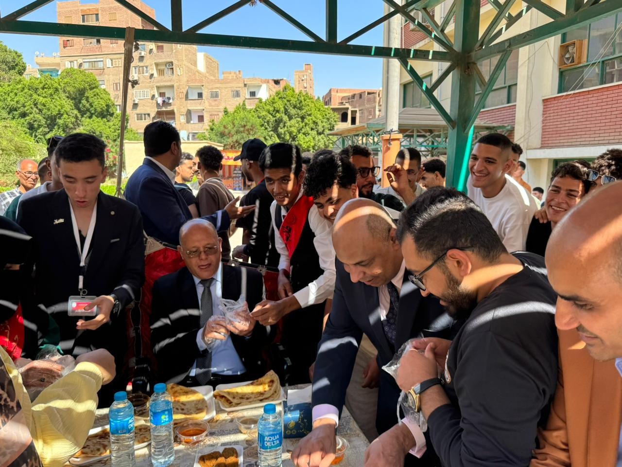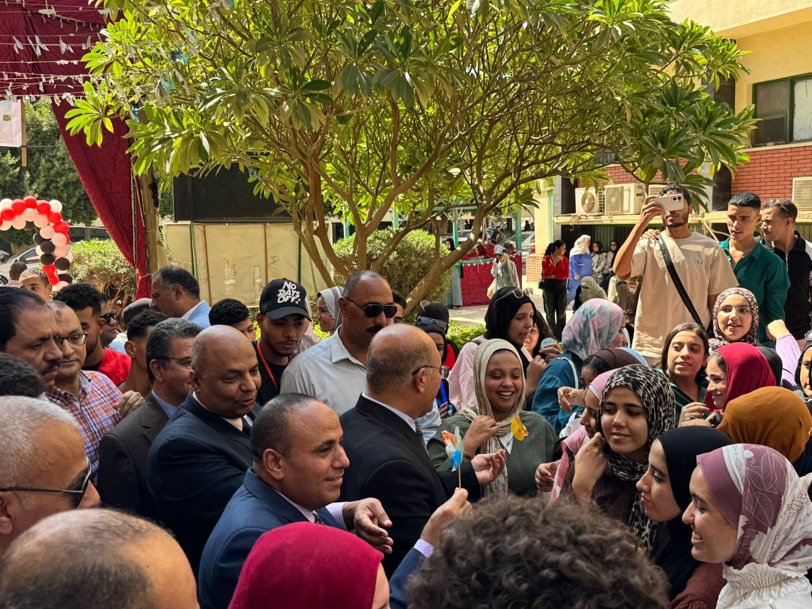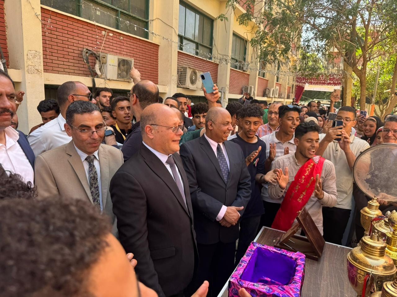 وشهد الحفل مشاركة فعالة لمعالي الأستاذ الدكتور حسان النعماني رئيس الجامعة يرافقه الساده نواب رئيس الجامعه الأستاذ الدكتور عبد الناصر يس والأستاذ الدكتور خالد عمران والأستاذ الدكتور حازم المشنب عميد الكلية والأستاذ الدكتور حسين عبد الحافظ وكيل الكلية لشؤون التعليم والطلاب واللواء طارق حافظ مدير عام الأمن الجامعي والأستاذ الدكتور محمود عبد العليم منسق الأنشطة الطلابية والأستاذ هشام جلال أمين الكلية والأستاذ مبارك صبري مدير إدارة رعاية الشباب إلى جانب نخبة من أعضاء هيئة التدريس والعاملين بالكلية