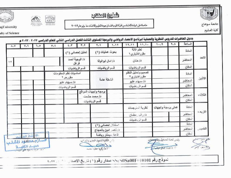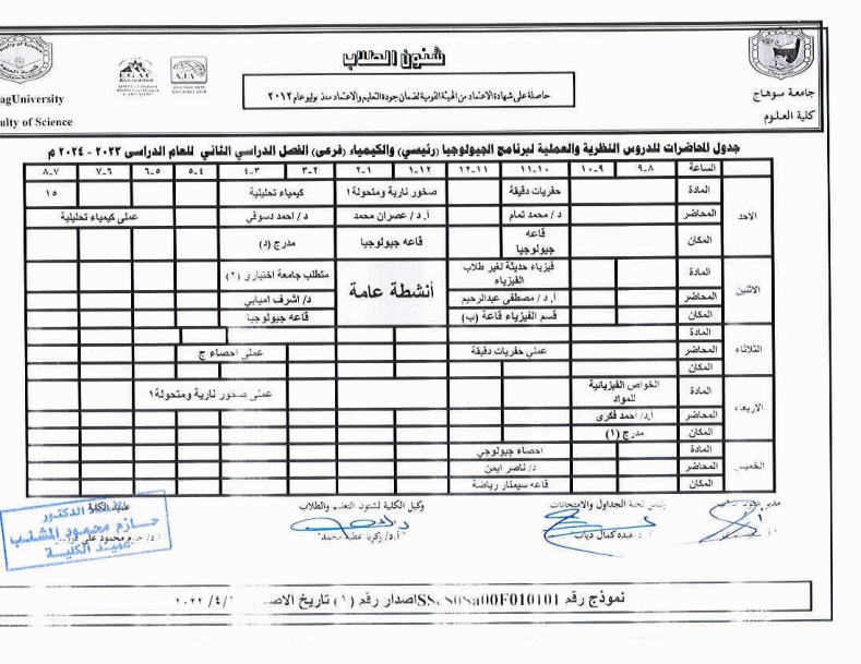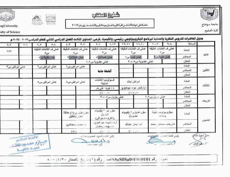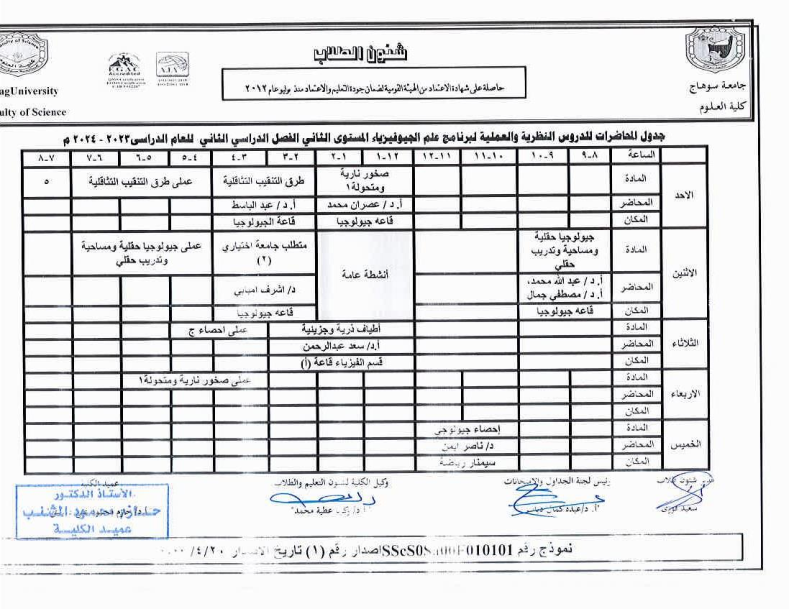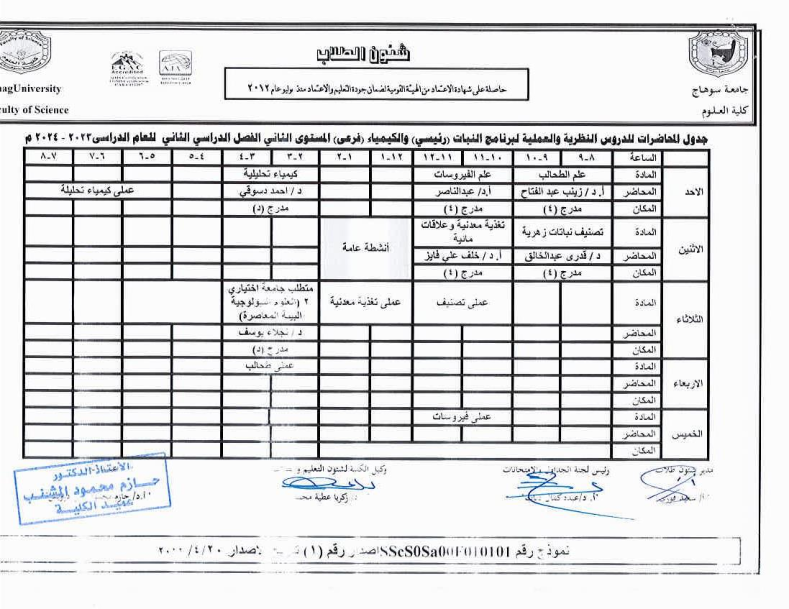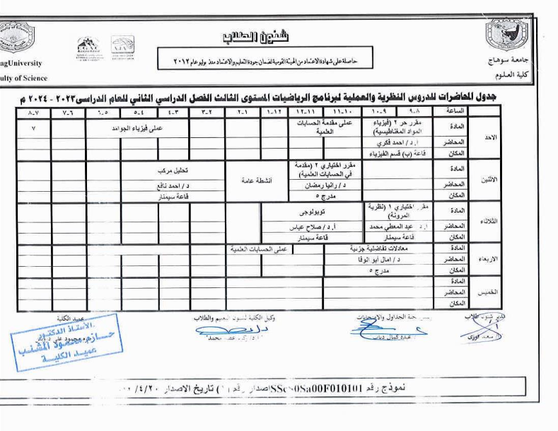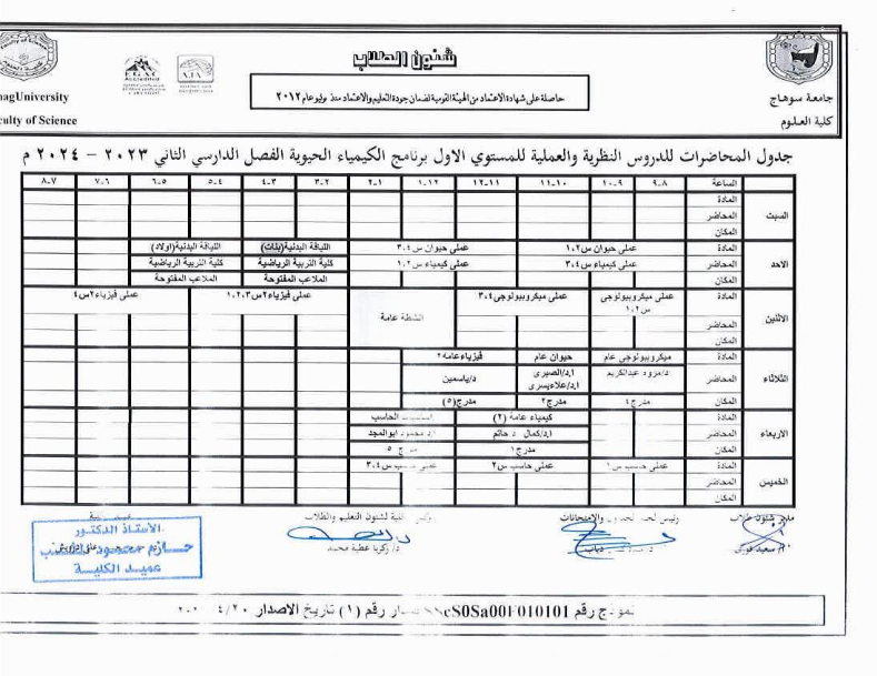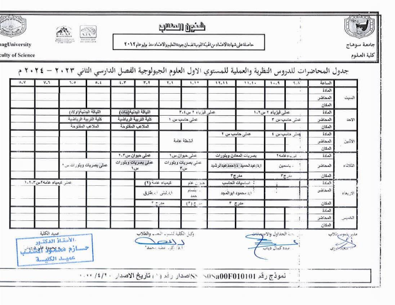 جداول المحاضرات النظرية والعملية لجميع الفرق الدراسية الفصل الثانى 2023-2024م
