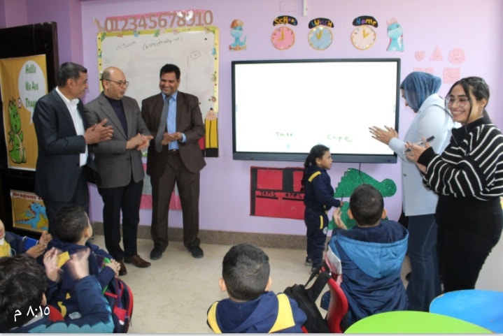 وضم الوفد الزائر كلاً من الأستاذ الدكتور عبده دياب، والأستاذ الدكتور حمدي سليمان، و الدكتور علي محمد علي. وقد كان في استقبال الوفد السادة المديرين المتميزين بالمدرسة، وهم الأستاذ حمدي مصطفى مدير عموم المدارس، والأستاذ علي السويسي مدير مرحلة التعليم الثانوي، والأستاذة منى سليمان مديرة مرحلة التعليم الأساسي (ابتدائي – إعدادي)، والأستاذة إسراء أحمد يوسف مديرة مرحلة رياض الأطفال، والأستاذ محمود كمال عبدالحميد مدير الشئون المالية و السادة أعضاء هيئة التدريس والعاملين بالمدرسة.