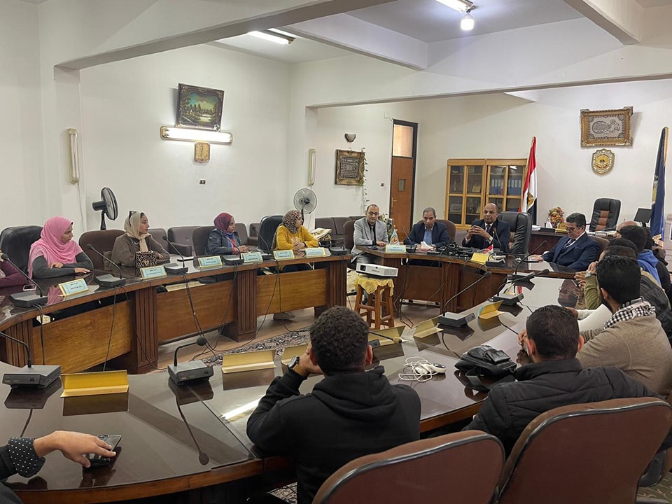 تحت رعاية معالى الوزير الاستاذ الدكتور حسان النعمانى وفى ضوء سلسلة اللقاءات والتوعيه التى تحث على المشاركه فى الانتخابات الرئاسية المقبله عقد الاستاذ الدكتور حازم المشنب عميد الكلية و الساده الوكلاء اجتماعا مع طلاب الكليه لحثهم على المشاركه فى الانتخابات الرئاسيه وممارسة حقهم الدستورى وأوضح لهم أهمية المشاركه بايجابيه باعتبارها ركيزة أساسية لبناء الوطن، وإسهاما مهما فى العملية الديمقراطية، واكد لهم مواصلة الكلية فى مساعدة الطلاب لمعرفة لجانهم الانتخابية تيسيراً عليهم وتشجيعاً لهم على ممارسة حقهم الدستوري في الإدلاء بأصواتهم وطالبهم بأن يكونوا إيجابيين، والإدلاء بأصواتهم الانتخابية بكل وضوح وشفافية، وكذلك طالبهم برفع الوعي المجتمعي لذويهم وقيامهم بدورهم في بناء وطنهم بشكل بارز من خلال المشاركة في الاستحقاقات الدستورية أيام 10 و11 و12 ديسمبر الجارى.وأشار سعادته إلى ثقته الكبيره في جميع الطلاب ومدى إيجابيتهم وولائهم وانتمائهم للوطن، متمنيًا لمصر الحبيبة دوام الأمن والاستقرار.
