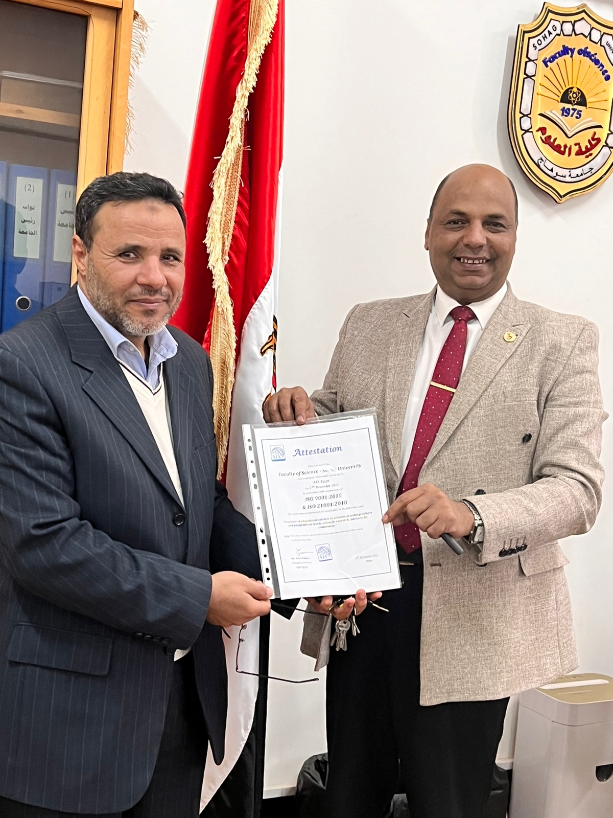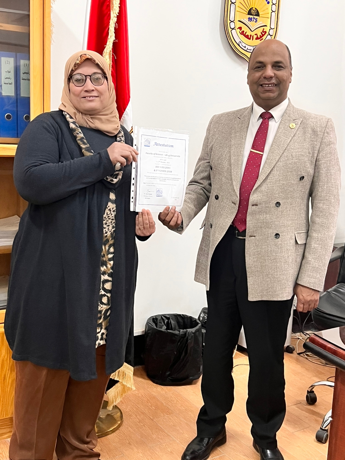 عميد كلية العلوم يقدم التهنئة لمنسوبي الكلية لحصول كلية العلوم على شهادتي الايزو