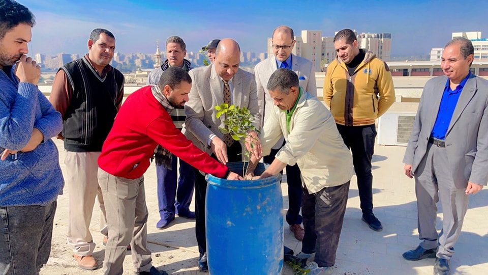 كلية العلوم تشارك فى زراعة ٢٠٠ شجرة مثمرة بمقر الجامعة القديم