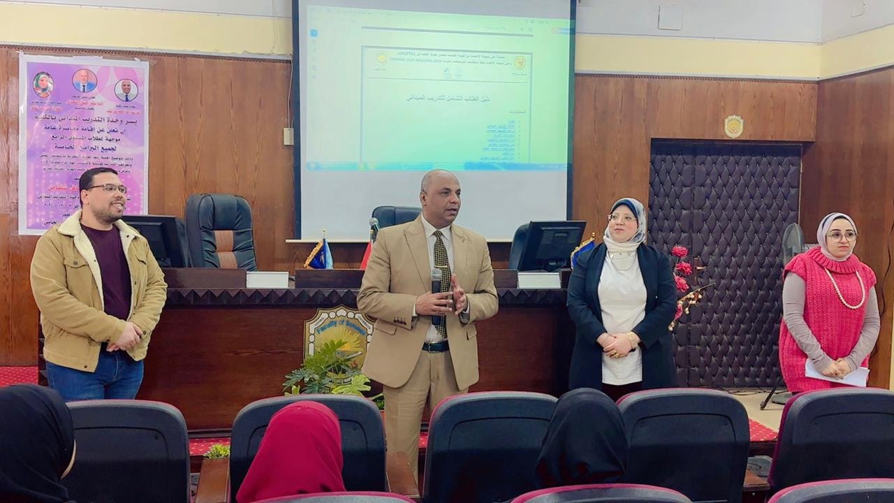 تحت رعاية معالى الوزير الاستاذ الدكتور حسان النعماني رئيس الجامعة وسعادة الأستاذ الدكتور حازم محمود المشنب عميد الكلية عقدت محاضرة عامة حول التدريب الميدانى موجهة لطلاب المستوى الرابع بجميع البرامج الخاصة اليوم الثلاثاء الموافق 2/12/2025 بقاعة السيمنار بالكلية حيث افتتح معالى العميد المحاضرة مؤكداً على الأهمية البالغة للتدريب الميدانى في ربط المعارف النظرية بالمهارات العملية وتأهيل الطلاب لسوق العمل مع التركيز على قيم العمل الجماعى واكتساب الخبرات الحياتية والعملية المتنوعة حاضر في المحاضرة الدكتورة هدى عبد الشافى المدرس بقسم الكيمياء ومدير وحدة التدريب الميدانى والدكتور محمد مخيمر المدرس بقسم الفيزياء ونائب مدير الوحدة حيث تم تقديم شرح مفصّل لأهداف التدريب الميدانى ودوره في رفع المهارات المعرفية والعملية وتعزيز الخبرات الميدانية المرتبطة بالممارسة المهنية إلى جانب تنمية مهارات التواصل والقيادة وبناء شبكات علاقات مهنية مع مؤسسات المجتمع المدنى وسوق العمل كما تم استعراض المتطلبات الأساسية للتقييم النهائى للمقرر والمتمثلة في التقرير الشامل وقائمة المرفقات وكتيب الطالب إضافة إلى شهادة التدريب من الجهة المستضيفة ونموذج التقييم من جهة التدريب وجرى التأكيد على ضرورة مشاركة الطلاب الفاعلة في الاستبيانات الورقية والإلكترونية التي تطلقها وحدة التدريب الميدانى لتقييم التجربة برمتها والوقوف على أبرز المكاسب وأهم التحديات التي واجهتهم وفي ختام المحاضرة تم فتح باب النقاش والرد على جميع استفسارات الطلاب حول المحاور المطروحة