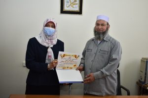 قام قسم الكيمياء بتنظيم احتفالية تكريم للسيد / منصور فؤاد عبدالظاهر – كبيرامناء معامل قسم الكيمياء بمناسبة بلوغه سن المعاش صرح بذلك أ.د/ حازم المشنب – عميد الكلية. كما اوضحت أ.د/ لبنى عبدالمحسن عبيد – رئيس قسم الكيمياء بان تنظيم الاحتفالية ياتى فى اطار دعم و تعزيز الروابط الاجتماعية بين منسوبى القسم و تكريما لعطاء الأستاذ منصور الذى امتد على مدار عشرات السنوات و اسهم فى دعم العملية التعليمية بالقسم. و قد حضر الاحتفالية لفيف من السادة أعضاء هيئة التدريس و الهيئة المعاونة و العاملين بالقسم كما شارك ايضا فى الأحتفالية كلا الأستاذ/ محمد نصر مدير عام إدارة الموارد البشرية بالجامعة و الأستاذ/ أحمد العارف عضو نقابة العاملين بالجامعة