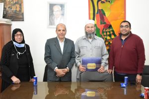 قام قسم الكيمياء بتنظيم احتفالية تكريم للسيد / منصور فؤاد عبدالظاهر – كبيرامناء معامل قسم الكيمياء بمناسبة بلوغه سن المعاش صرح بذلك أ.د/ حازم المشنب – عميد الكلية. كما اوضحت أ.د/ لبنى عبدالمحسن عبيد – رئيس قسم الكيمياء بان تنظيم الاحتفالية ياتى فى اطار دعم و تعزيز الروابط الاجتماعية بين منسوبى القسم و تكريما لعطاء الأستاذ منصور الذى امتد على مدار عشرات السنوات و اسهم فى دعم العملية التعليمية بالقسم. و قد حضر الاحتفالية لفيف من السادة أعضاء هيئة التدريس و الهيئة المعاونة و العاملين بالقسم كما شارك ايضا فى الأحتفالية كلا الأستاذ/ محمد نصر مدير عام إدارة الموارد البشرية بالجامعة و الأستاذ/ أحمد العارف عضو نقابة العاملين بالجامعة