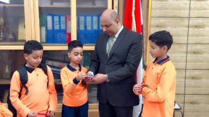 وفى نهاية الرحلة المدرسيه التقط الطلاب صور تذكاريه مع سعادته و قدم مسؤلى المدرسة الشكر لإدارة الكلية على حسن الاستقبال والشرح الوافي