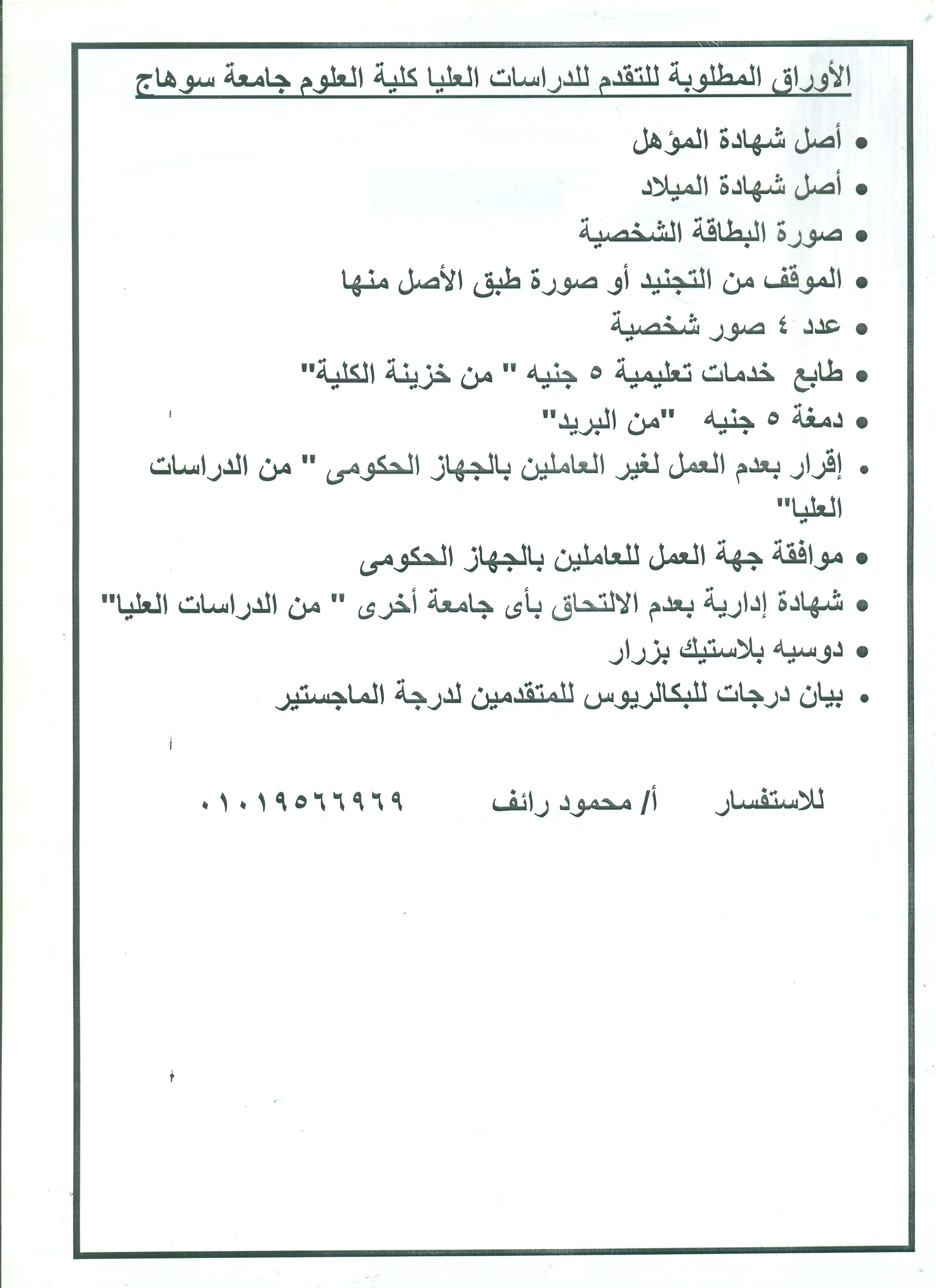 الأوراق المطلوبة للتقدم للدراسات العليا كلية العلوم جامعة سوهاج