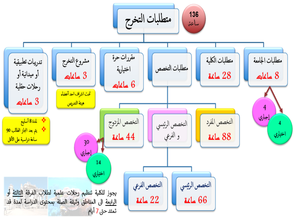 - تخصص رئيسي وفرعيMajor/Minor: تخصص فيه حوالي 75% من الساعات العلمية للتخصص الرئيسي، وحوالي 25% من الساعات العلمية للتخصص الفرعي.