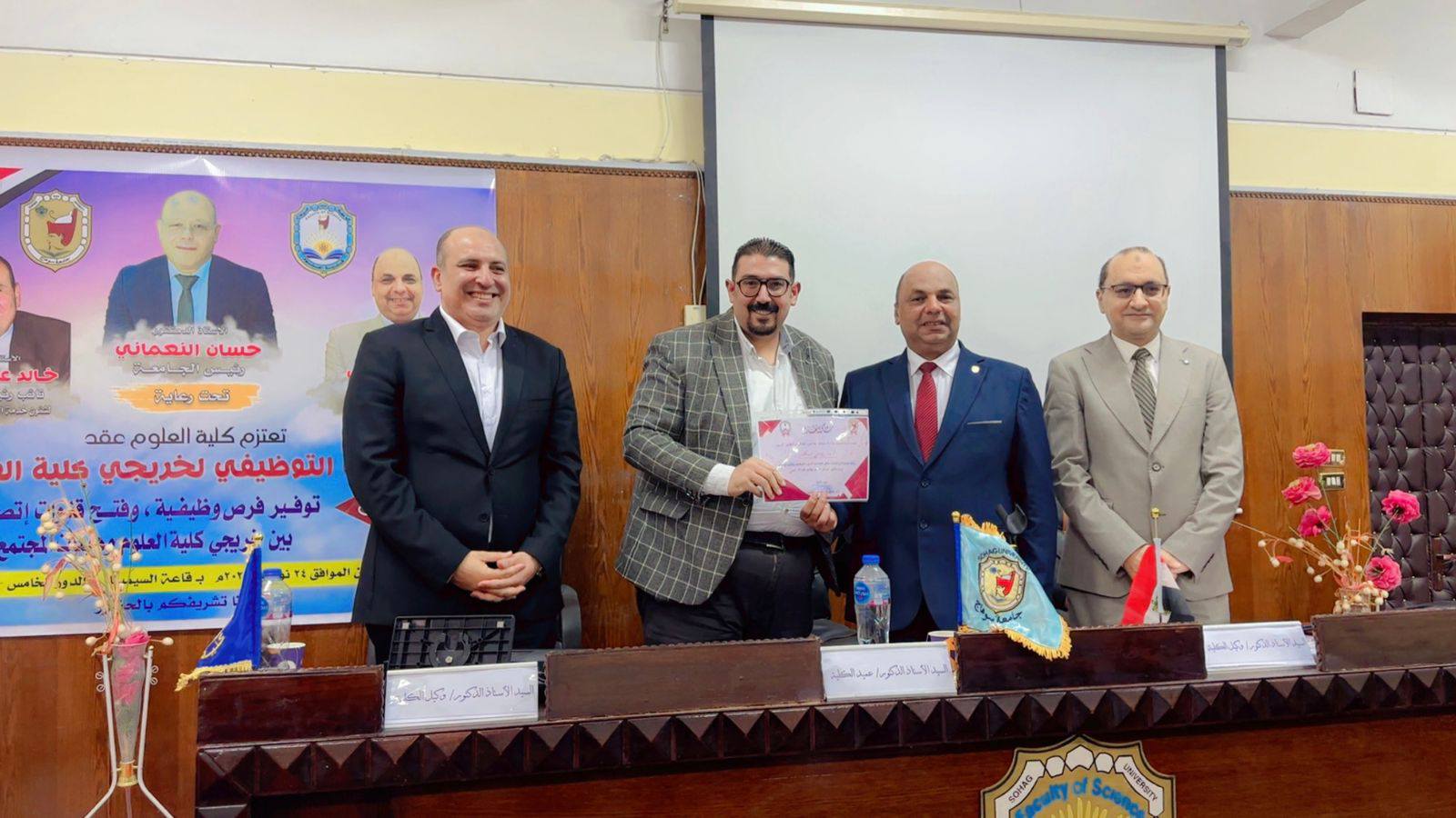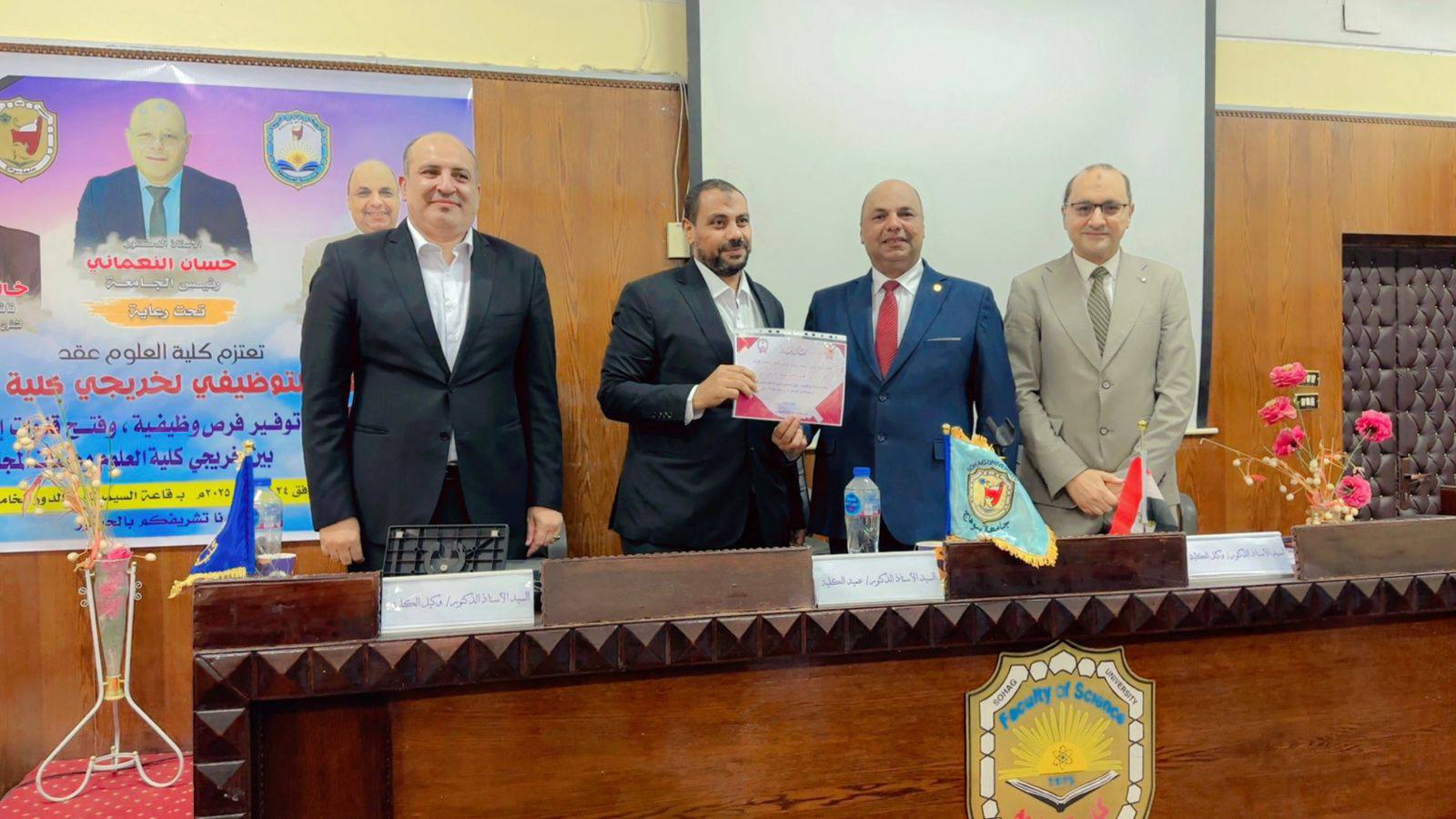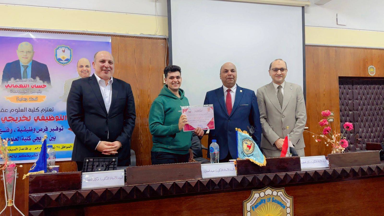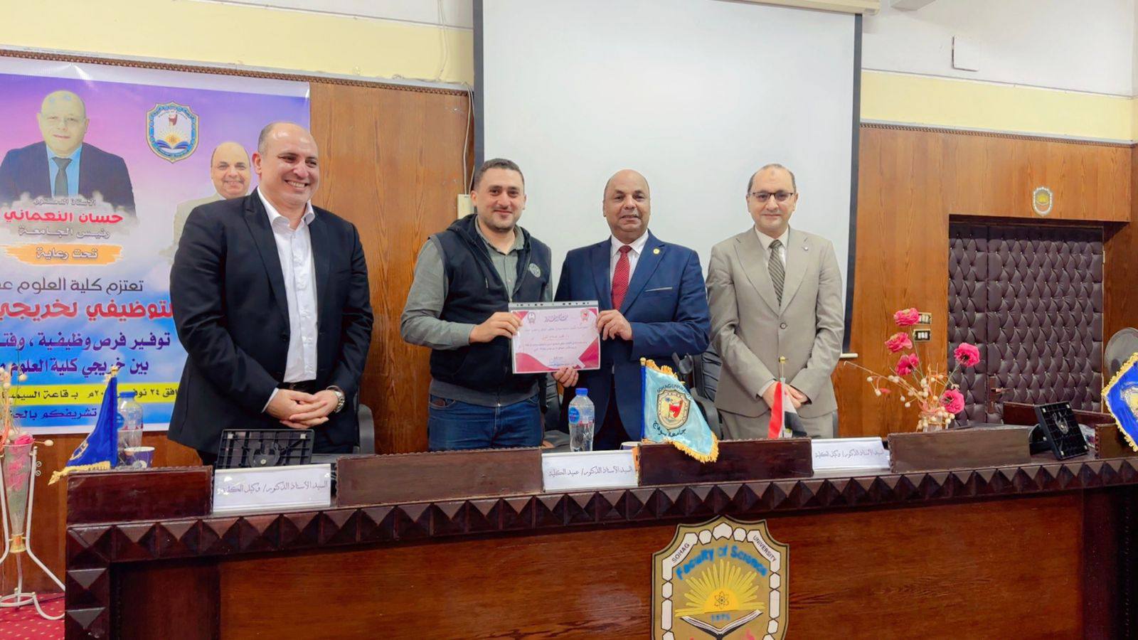 انطلاقاً من رؤية الكلية ورسالتها في خدمة المجتمع وخلق شراكات استراتيجية مع القطاعين العام والخاص، نظمت كلية العلوم بجامعة سوهاج ملتقاها التوظيفي تحت رعاية كريمة من معالي الوزير الأستاذ الدكتور حسان النعماني رئيس الجامعة، وسعادة الأستاذ الدكتور خالد عمران نائب رئيس الجامعة لشؤون خدمة المجتمع وتنمية البيئة ، وسعادة الأستاذ الدكتور حازم المشنب عميد الكلية، وريادة الأستاذ الدكتور علاء يسري، والأستاذ الدكتور عمر الحادي وكيل الكلية لشؤون الدراسات العليا والبحوث.