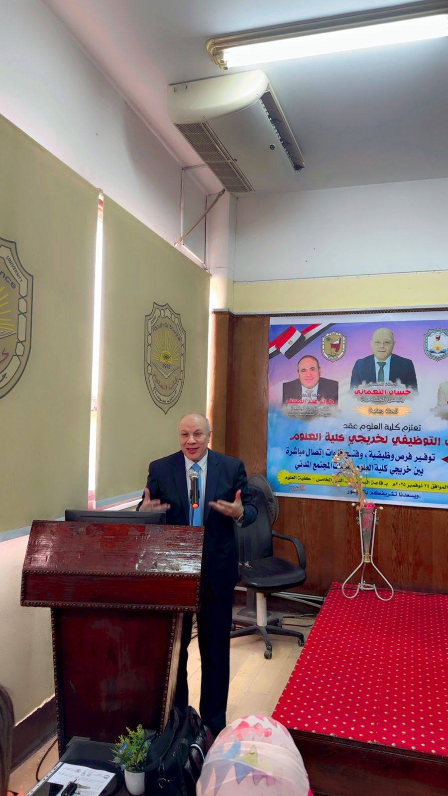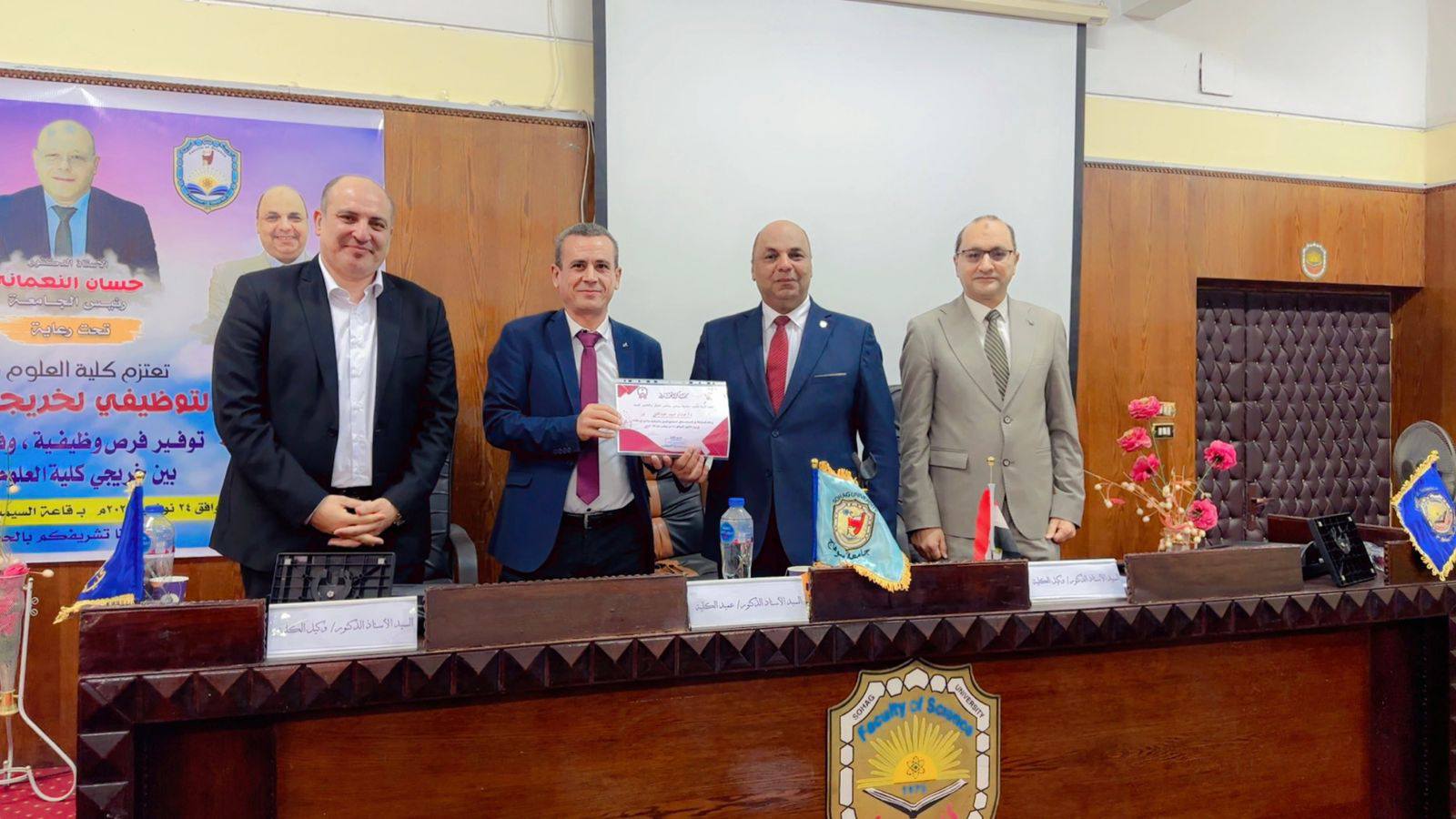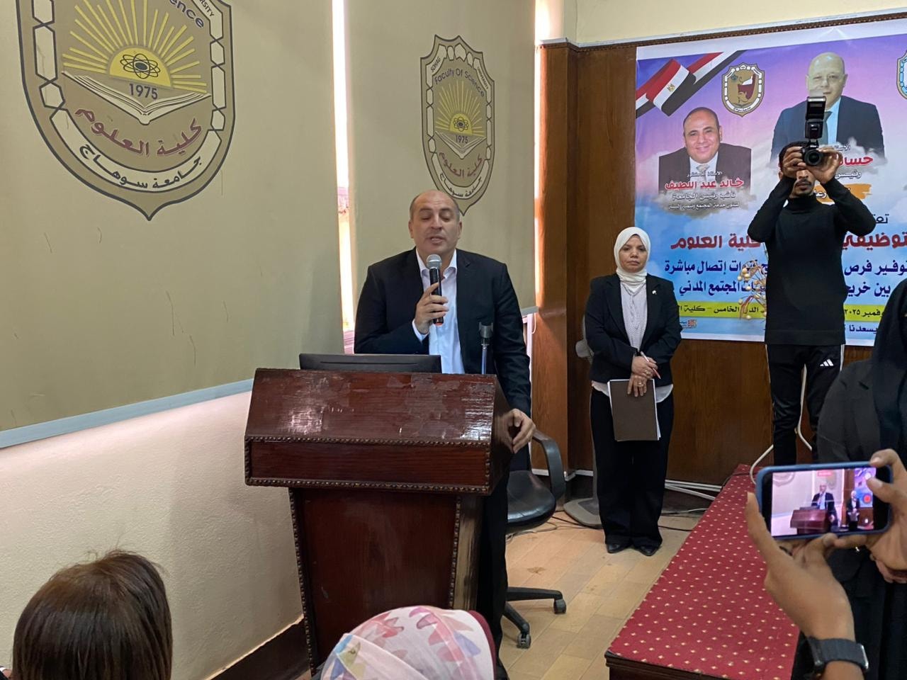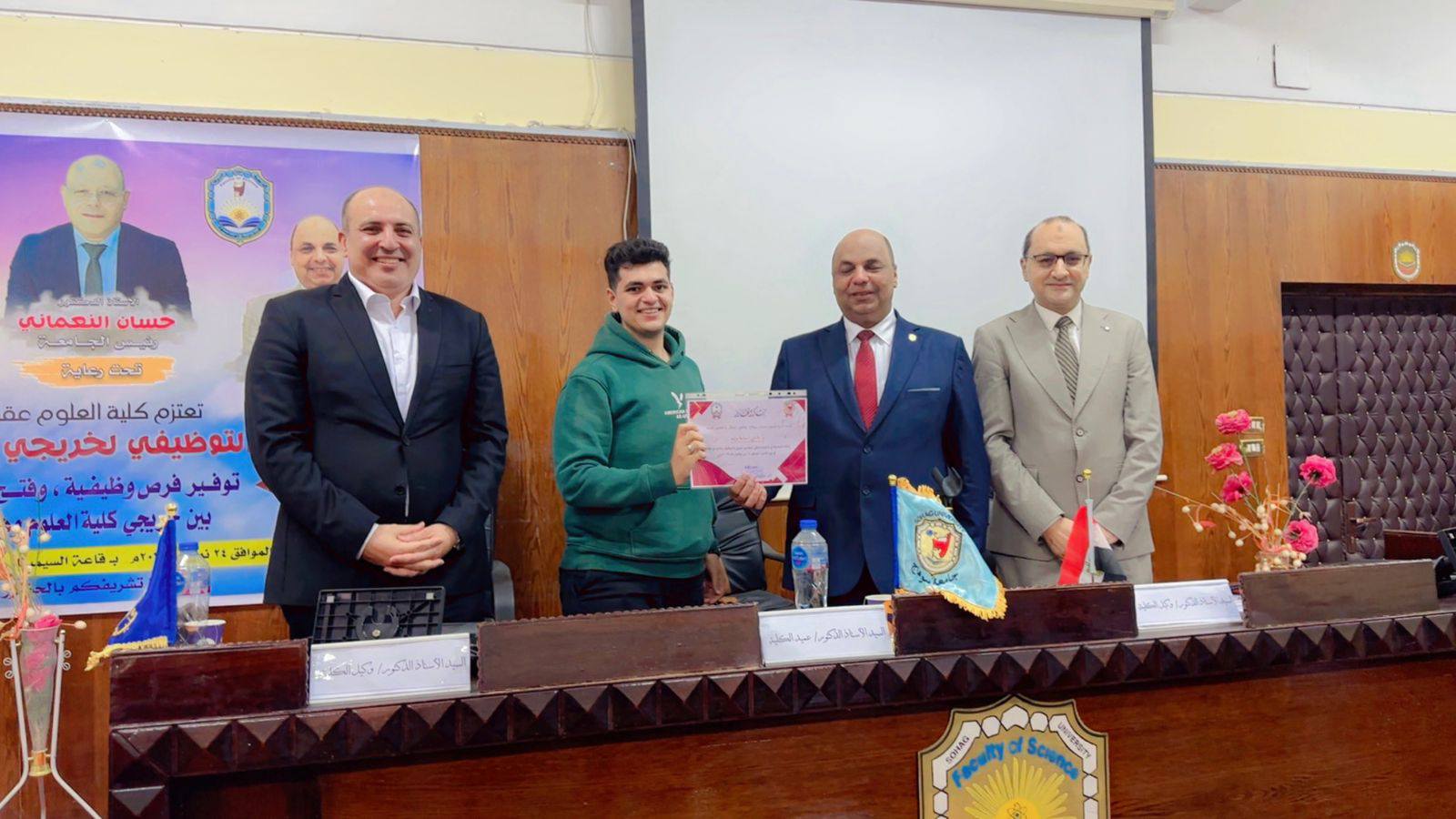 انطلاقاً من رؤية الكلية ورسالتها في خدمة المجتمع وخلق شراكات استراتيجية مع القطاعين العام والخاص، نظمت كلية العلوم بجامعة سوهاج ملتقاها التوظيفي تحت رعاية كريمة من معالي الوزير الأستاذ الدكتور حسان النعماني رئيس الجامعة، وسعادة الأستاذ الدكتور خالد عمران نائب رئيس الجامعة لشؤون خدمة المجتمع وتنمية البيئة ، وسعادة الأستاذ الدكتور حازم المشنب عميد الكلية، وريادة الأستاذ الدكتور علاء يسري، والأستاذ الدكتور عمر الحادي وكيل الكلية لشؤون الدراسات العليا والبحوث.