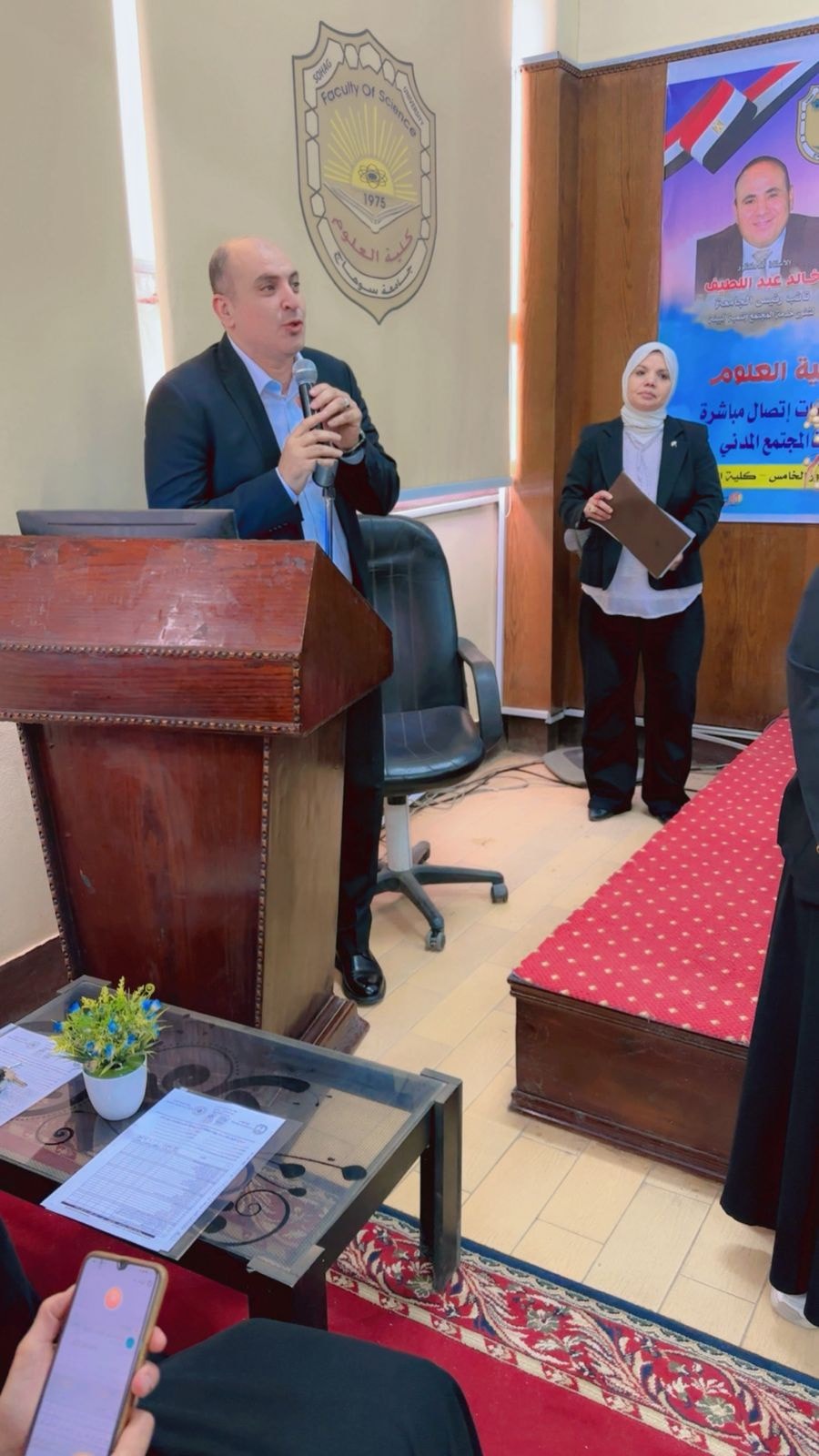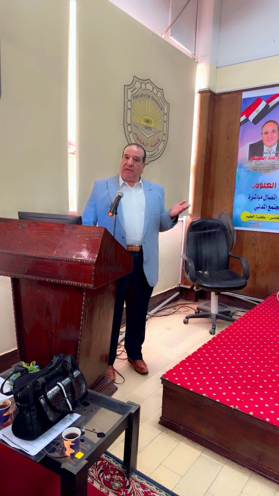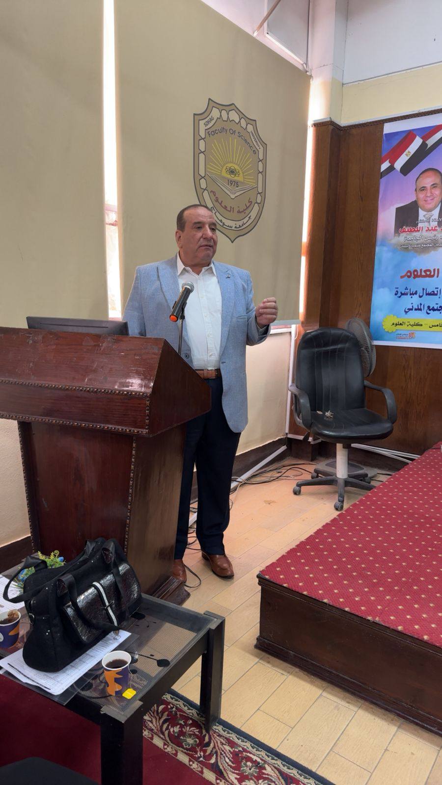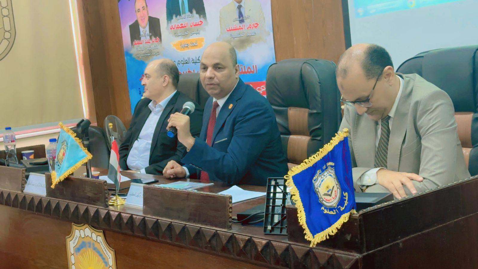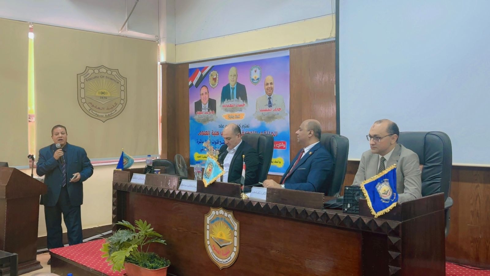 وبدأ الملتقي بكلمة ترحيبية لسعادة العميد الأستاذ الدكتور حازم المشنب، أعرب فيها عن اعتزازه بهذا التجمع الذي يجسد الشراكة الحقيقية بين كلية العلوم وسوق العمل، حيث أكد سعادته على افتتاح برامج جديدة متطورة لتأهيل الشباب لسوق العمل، مشدداً على أن الكلية تضع على عاتقها مسئولية إعداد كوادر شبابية مؤهلة قادرة على الإسهام في دفع عجلة التنمية ومواكبة متطلبات العصر. كما قدم سعادته الشكر الجزيل لإدارة جامعة سوهاج بقيادة الأستاذ الدكتور حسان النعماني على دعمه الدائم والمتواصل لكلية العلوم ورعايته المستمرة لأنشطتها وفعالياتها.