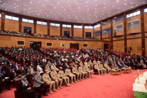 جاء ذلك بحضور العميد نبيل شحاتة المستشار العسكري، ونخبة من قائدي وحدات قوات الدفاع الشعبي والعسكري، وعمداء الكليات وأعضاء هيئة التدريس، وممثلي المجتمع المدني بمختلف طوائفه، وحشد كبير من طلاب الجامعة.