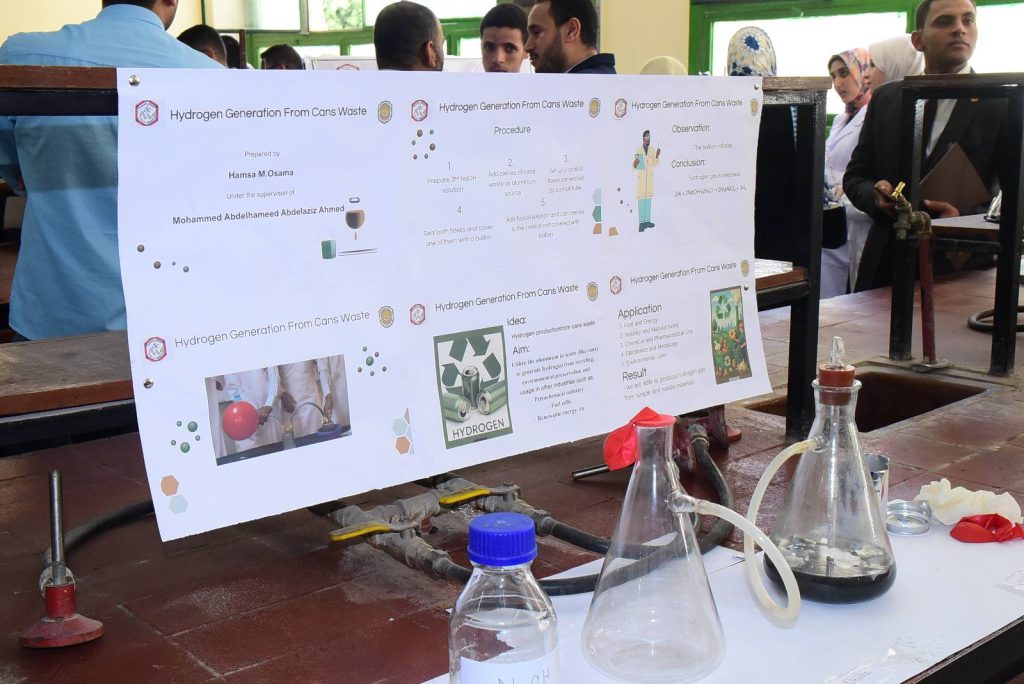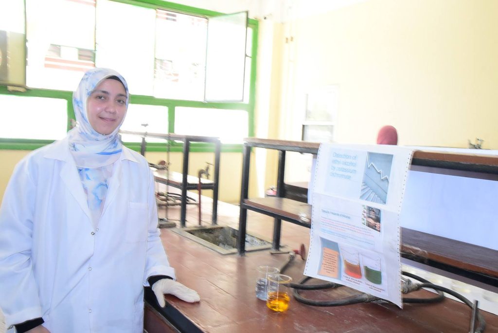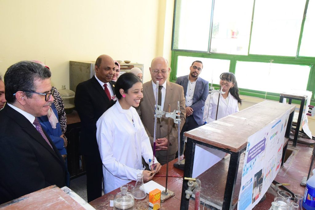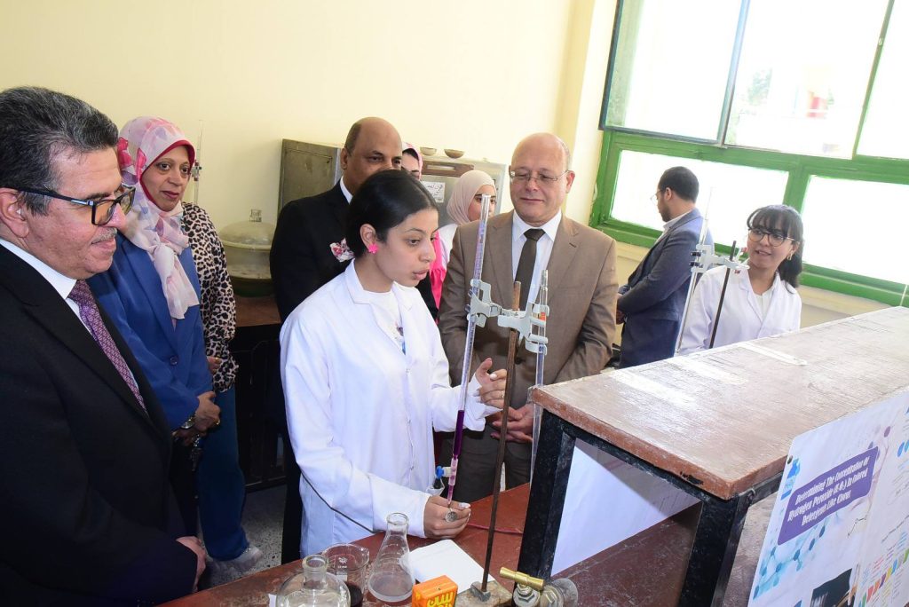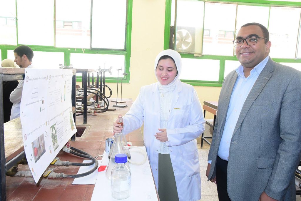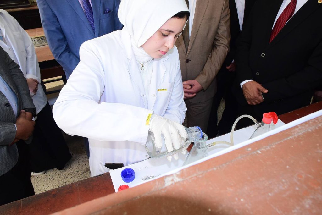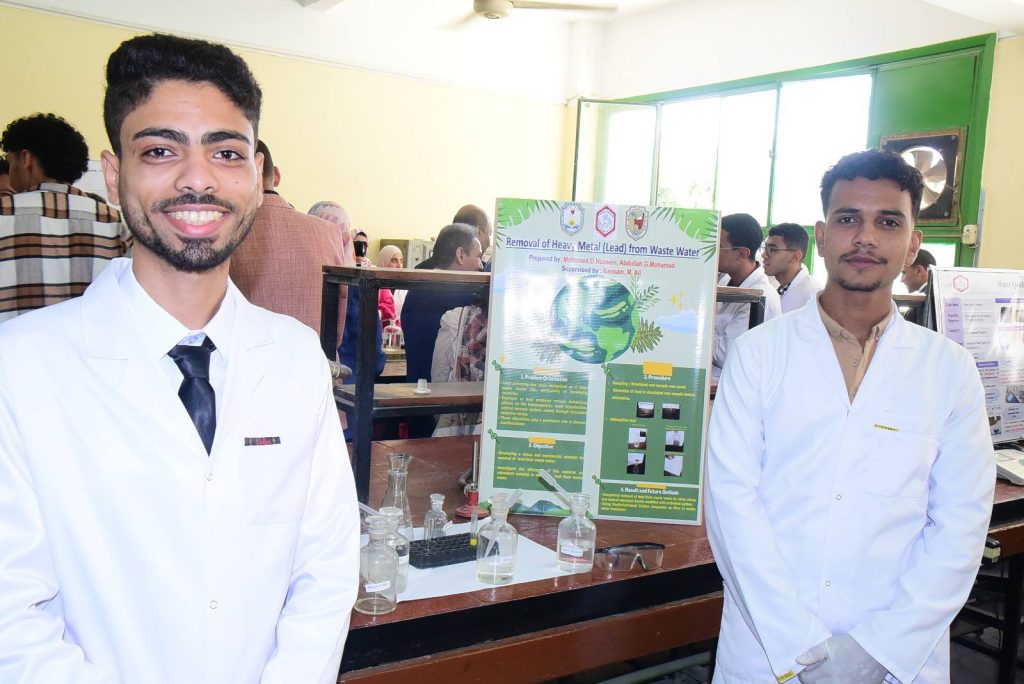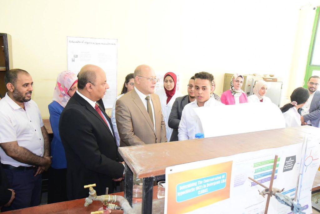 وأوضح الدكتور حازم المشنب عميد الكلية أن كلية العلوم أخذت على عاتقها مهمة تنشيط البحث العلمي وتهيئة المناخ لكافة الباحثين والطلاب، وتوفير الدعم المادي واللوجيستي لهم في ظل وجود قيادة واعية لأهمية البحث العلمي، متمثلة في الدكتور حسان النعماني رئيس الجامعة، والذي لا يألوا جهدا في دعم البحث العلمي بالجامعة، مضيفا ان التجارب التطبيقية شملت تحليل ومعالجه المياه، ازالة ايقونات العناصر الثقيلة من الماء، ضبط الجودة في بعض المنتجات الهامة مثل تقدير تركيز المادة الفعاله بالاسبرين، تقدير تركيز فيتامين سي في بعض المشروبات، تقدير كفاءة بعض المنظفات، ملح الطعام، التطبيقات الصناعية للسبائك والفلزات، الطلاء الكهربائي للحديد، تحضير الهيدروجين من مخلفات المعلبات المعدنية، تجارب الكيمياء الحيوية منها تقدير نسبه الكوليسترول في بلازما الدم، وتقدير الجلوكوز في الدم، تجارب خاصه بالصباغة ومنها صباغه الصوف والقطن والياف الاكريليك، تجارب البوليمرات ومنها تحضير البلاستيك من النشا، تجارب الكيمياء التخليقية ومنها تحضير الأسبرين وتحضير الباراسيتموال.