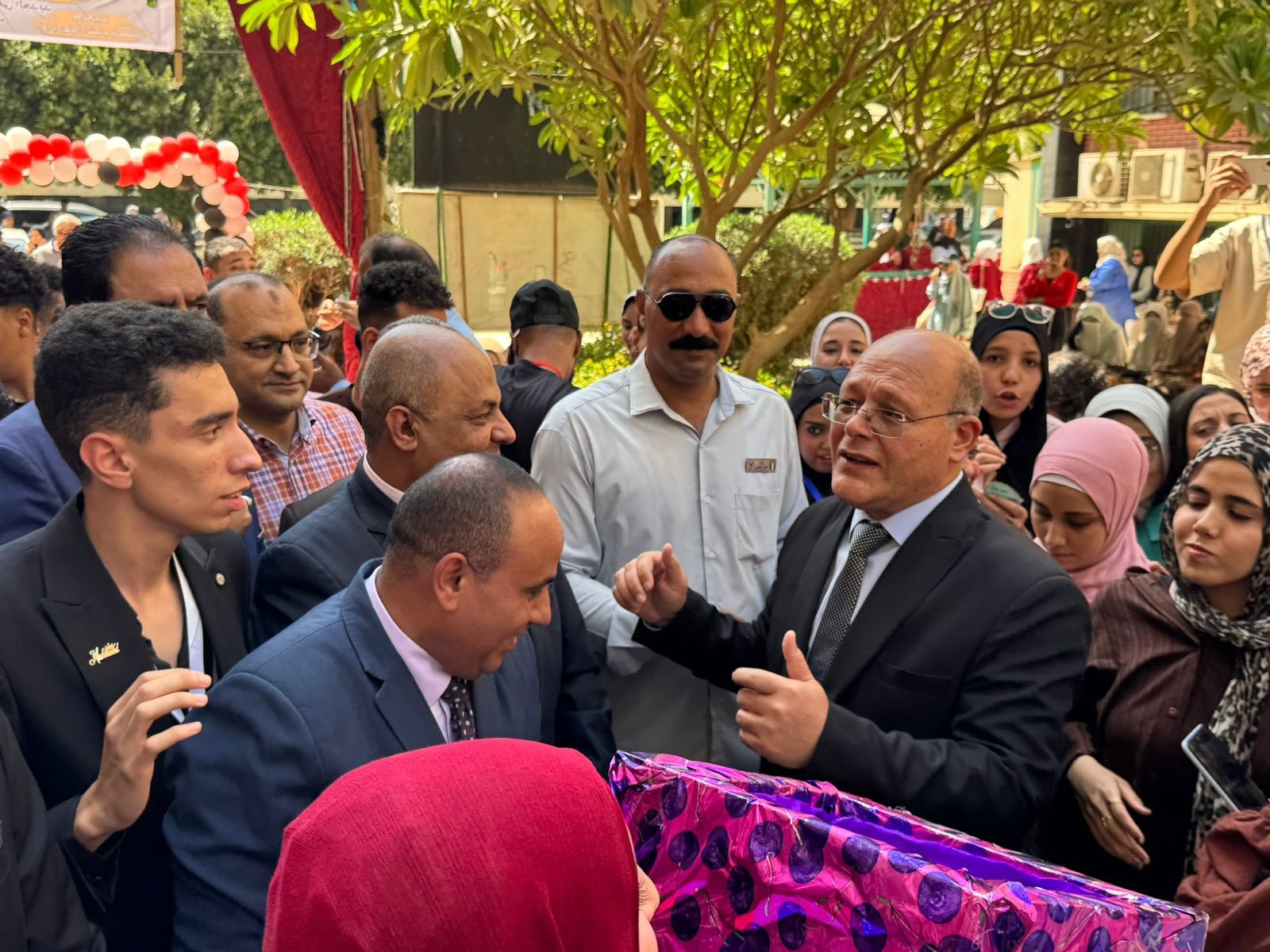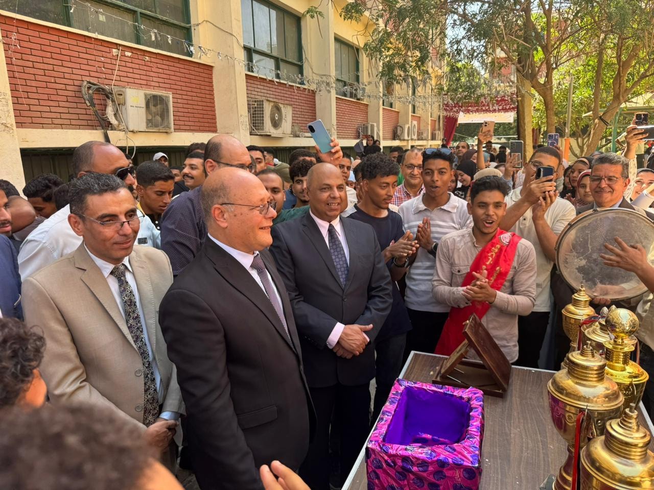 وشهد الحفل مشاركة فعالة لمعالي الأستاذ الدكتور حسان النعماني رئيس الجامعة يرافقه الساده نواب رئيس الجامعه الأستاذ الدكتور عبد الناصر يس والأستاذ الدكتور خالد عمران والأستاذ الدكتور حازم المشنب عميد الكلية والأستاذ الدكتور حسين عبد الحافظ وكيل الكلية لشؤون التعليم والطلاب واللواء طارق حافظ مدير عام الأمن الجامعي والأستاذ الدكتور محمود عبد العليم منسق الأنشطة الطلابية والأستاذ هشام جلال أمين الكلية والأستاذ مبارك صبري مدير إدارة رعاية الشباب إلى جانب نخبة من أعضاء هيئة التدريس والعاملين بالكلية