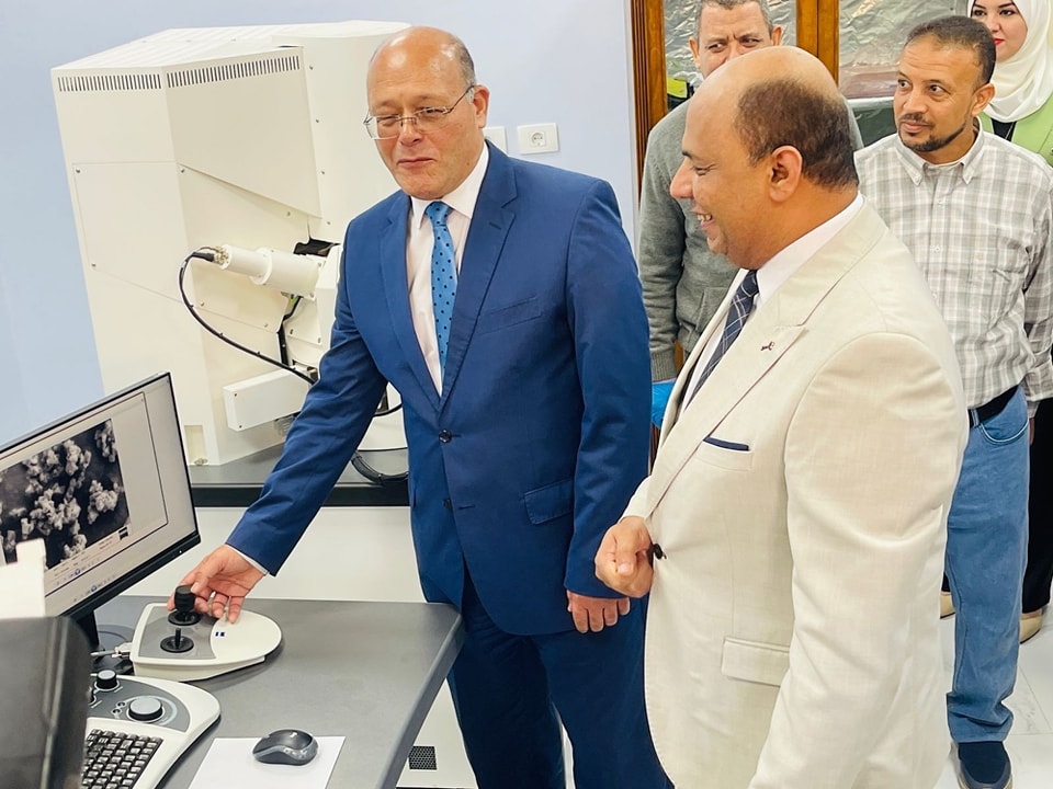جاء ذلك خلال افتتاح الدكتور حسان النعماني للميكروسكوب الإلكتروني والذي يعد الأحدث والأكثر تقدماً، ليستخدم في مجال البحث العلمى بالجامعة وخارجها وذلك بالحرم الجامعي القديم، يصاحبه الدكتور عبد الناصر يس والدكتور خالد عمران نواب رئيس الجامعة والدكتور حازم المشنب عميد كلية العلوم والدكتور إسلام الشيخ مدير الوحدة، وعدد من أعضاء هيئة التدريس.