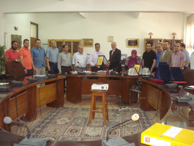 كرم سياده العميد أ.د/ أحمد محمد سليمان اصحاب افضل الابحاث التطبيقية لليوم العلمى الثالث للكلية