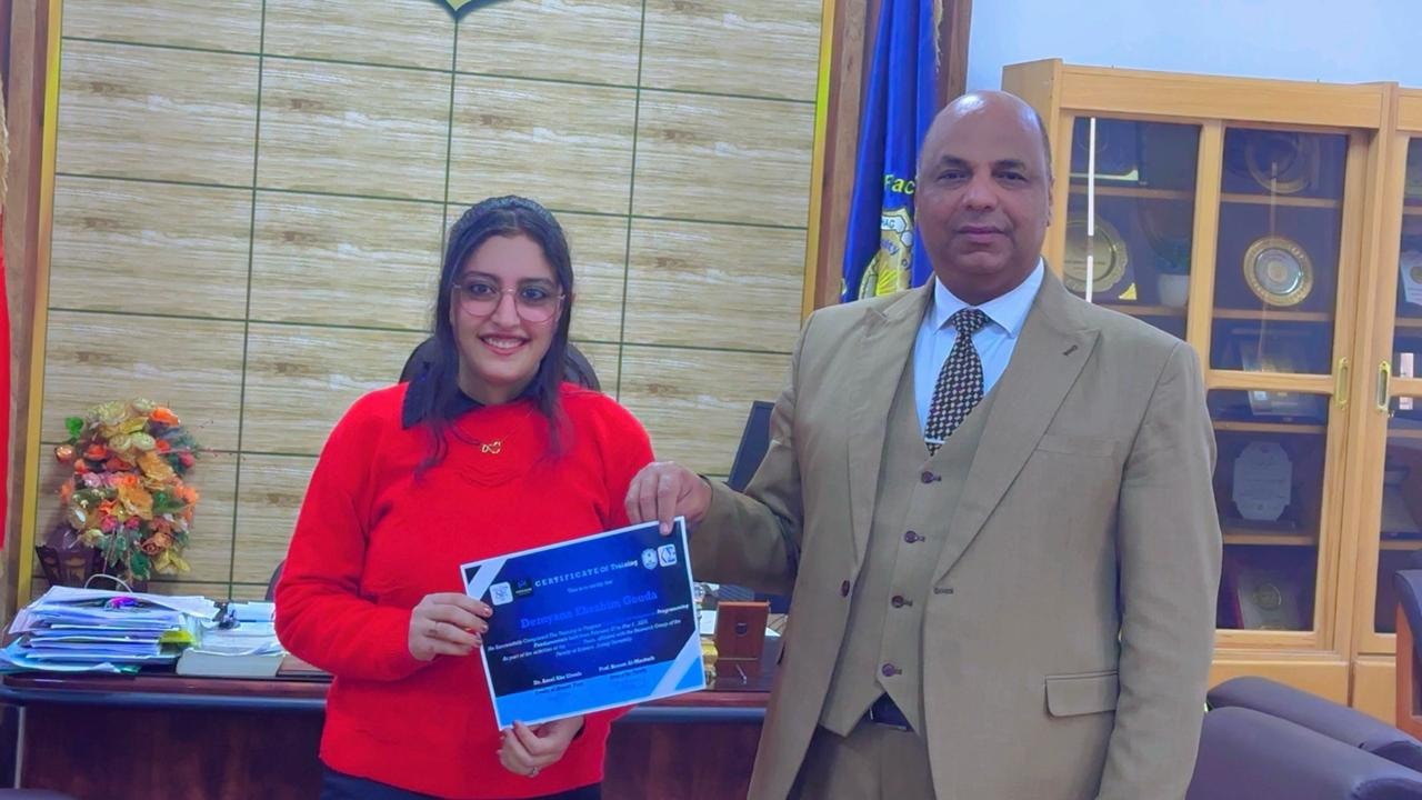 تكريم *الدفعة الرابعة* من طلاب فريق البحث العلمي الطلابي (Student Research Team)، إلى جانب تكريم *الدفعة الاولي* من طلاب فريق “مسار ” (Masaar) بوصفه أحد المسارات التخصصية المنبثقة عن فريق البحث العلمي الطلابي وذلك تحت رعاية سعادة الأستاذ الدكتور حازم المشنب عميد الكلية وإشراف الدكتوره امال ابو الوفا المشرفة على المشروع الطلابي ، تقديرًا لجهودهم والتزامهم وتقدّمهم الملحوظ خلال فترة التدريب.