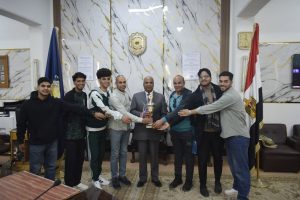 وقد حرص سعادته على التقاط الصور التذكارية مع الطلاب وأعضاء هيئة التدريس الفائزين، كما أثنى على أدائهم المتميز وروحهم الرياضية العالية التي جعلتهم خير سفراء للكلية، موجهًا تحية تقدير خاصة لإدارة رعاية الشباب بالكلية، بقيادة الأستاذ المتميز مبارك صبري، مدير الإدارة،والاستاذ عمرو جنيدى مشيدًا بجهودهم الحثيثة في تحفيز الطلاب وتنظيم المشاركات التي أتت بهذه النتائج المشرفة، ومؤكدًا دور الأنشطة الطلابية في صقل شخصية الطلاب، وتعزيز قيم المنافسة الشريفة، وبناء شخصية متكاملة علميًا ورياضيًا وأخلاقيًا.