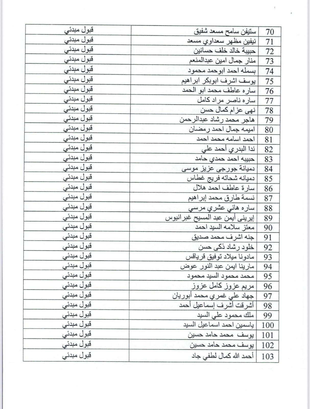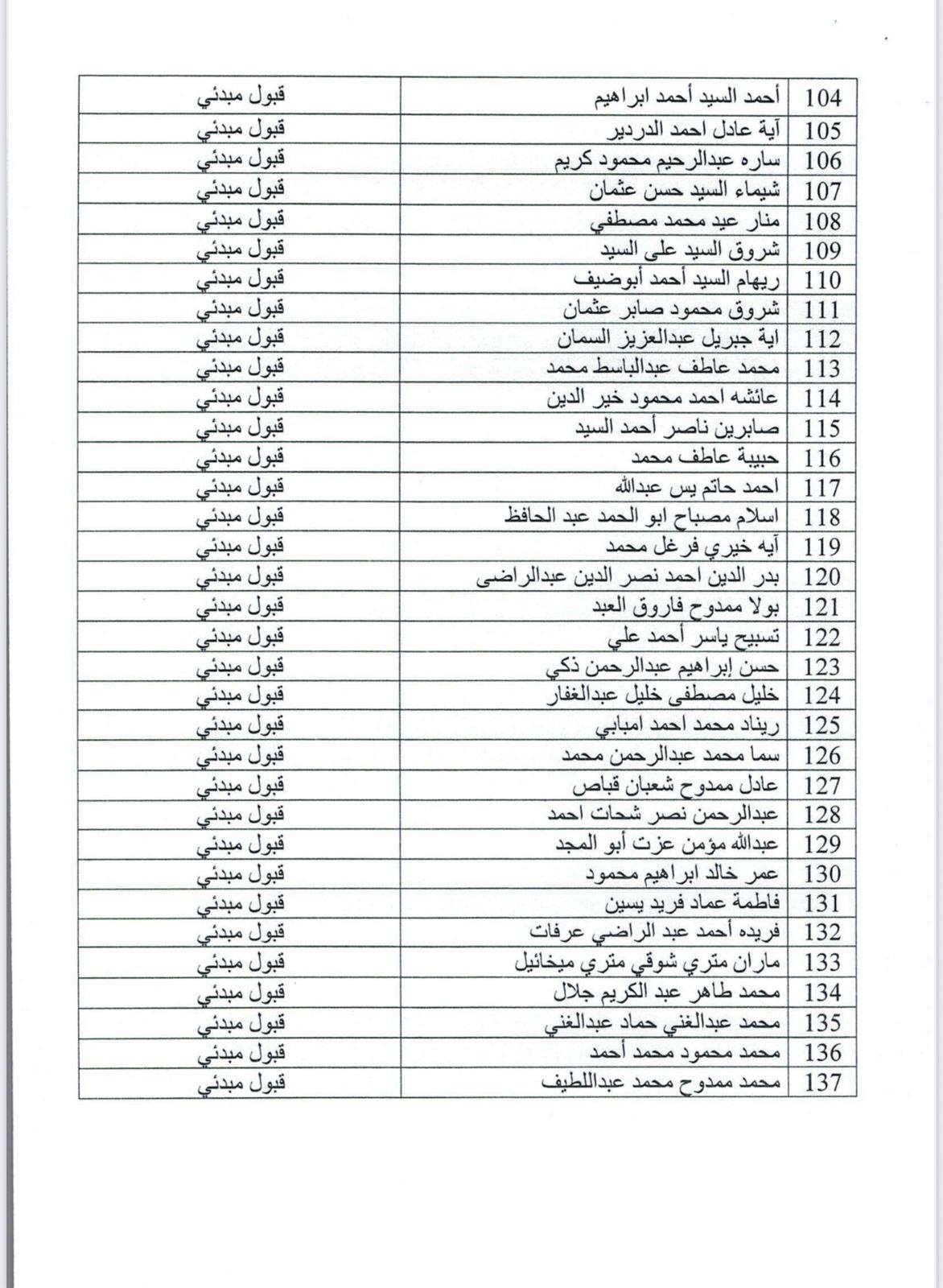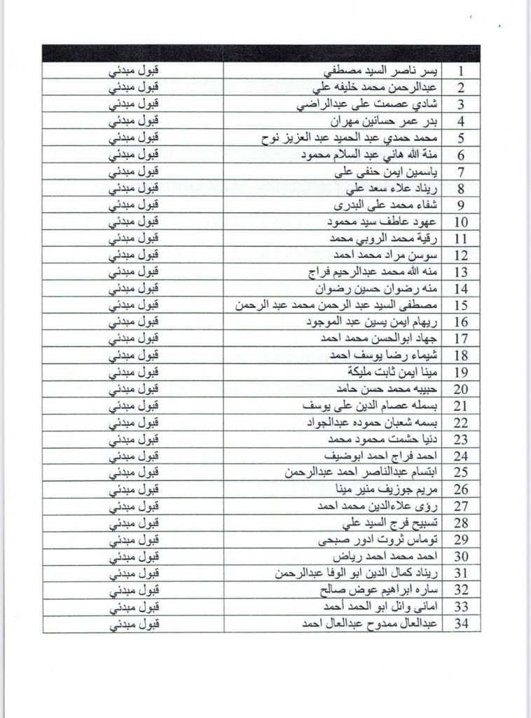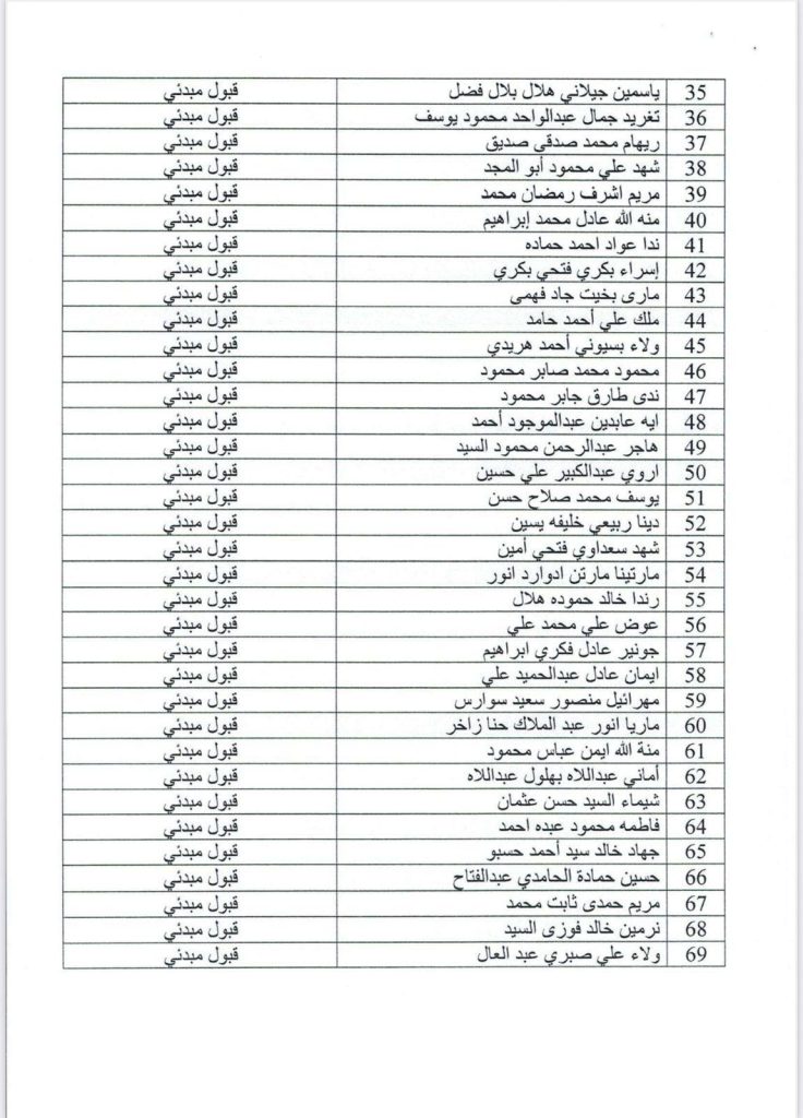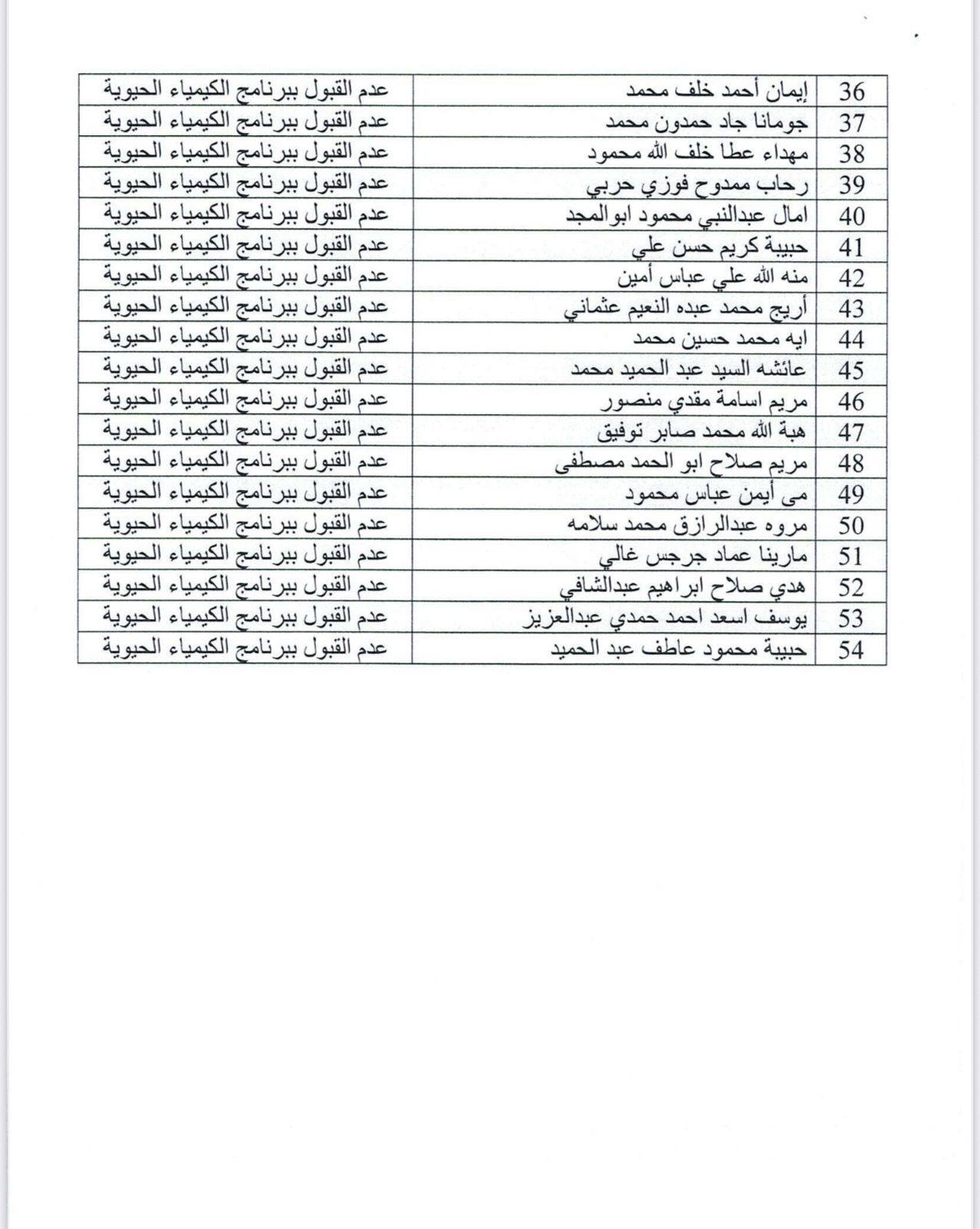 على الطلاب الغير مقبولين اختيار برنامج اخر حيث توجد اماكن شاغرة في البرامج التالية