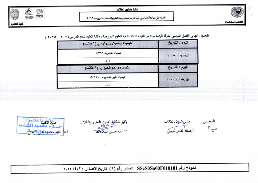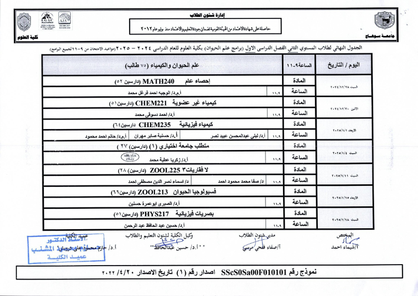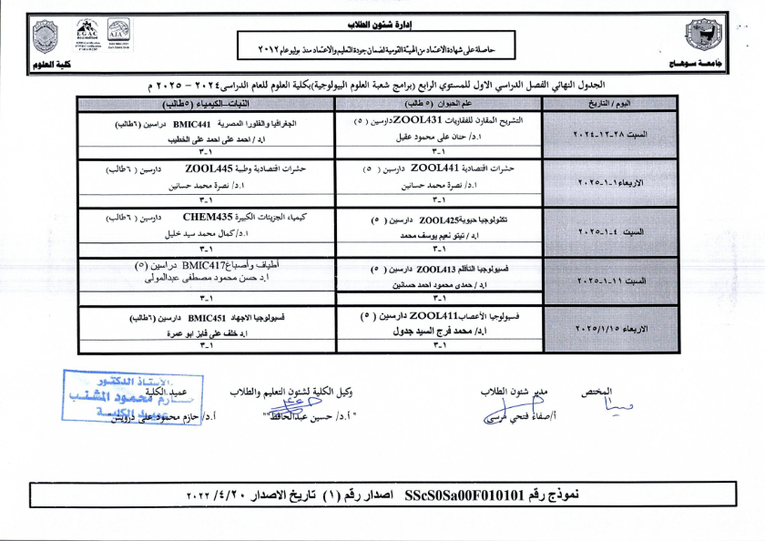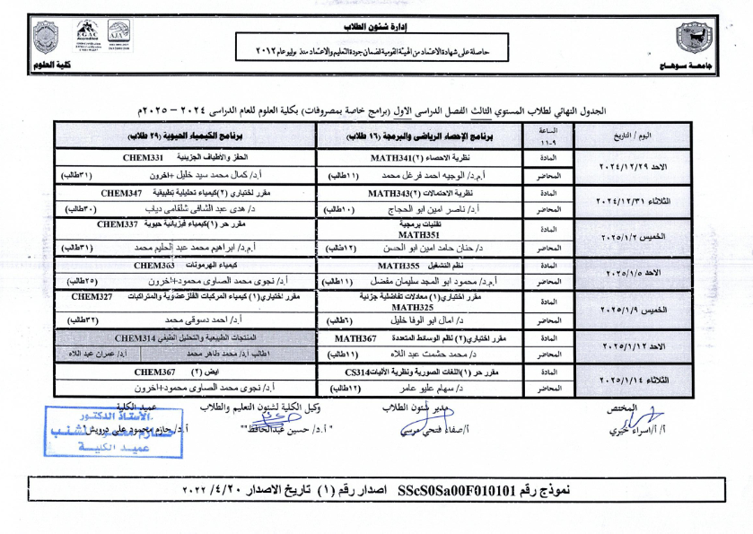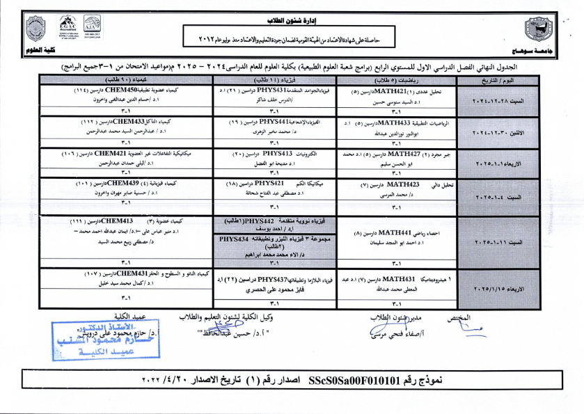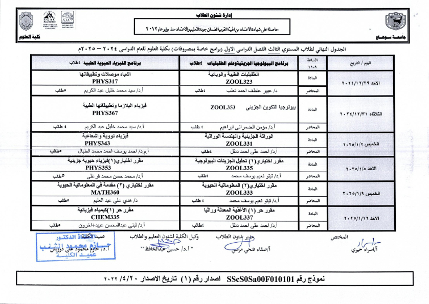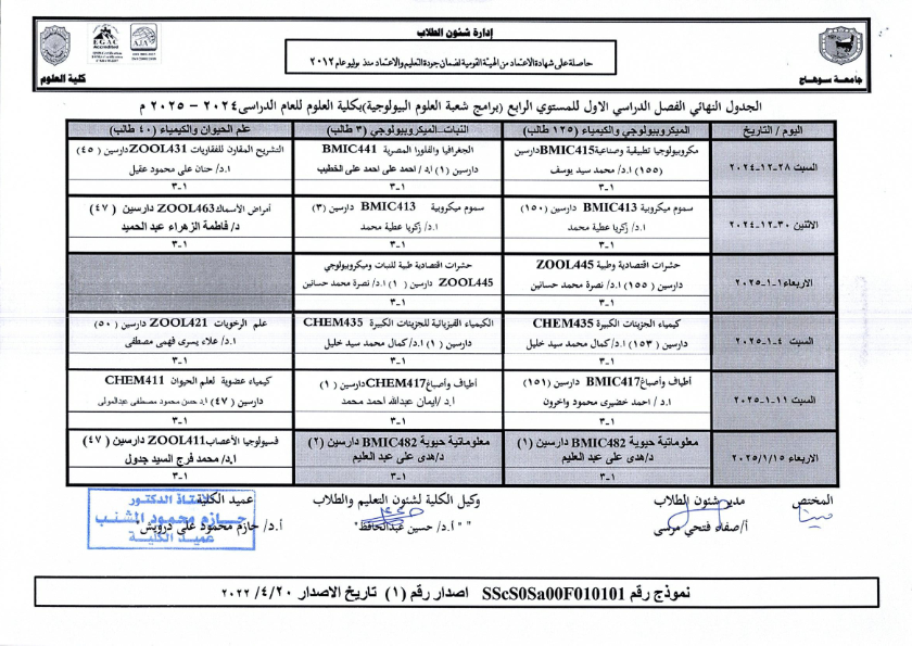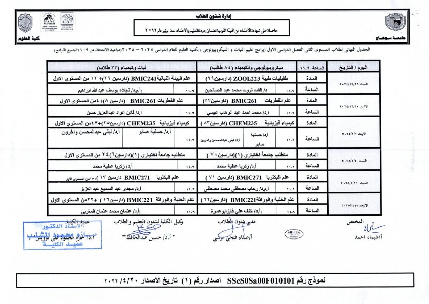 نشر على 18 ديسمبر, 2024نشر في احداث وفعاليات،اخبار الكلية جداول امتحانات كلية العلوم ٢٠٢٤ – ٢٠٢٥ جداول امتحانات كلية العلوم ٢٠٢٤ – ٢٠٢٥ تصفّح المقالات بيان بأماكن لجان الامتحانات للفصل الدراسي الأول 2025_2024مكتبة القسم