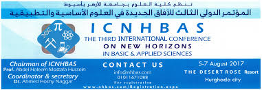 المؤتمر الثالث للآفاق الجديدة في العلوم الاساسية والتطبيقية والمقررانعقاده في الفترة من 5-7 أغسطس 2017 بمدينة الغردقة والذي تنظمه كلية العلوم جامعة الازهر بأسيوط – حيث أن لكل منهما بحث مقبول للنشر – طبقا للوائح والقوانين المنظمة لذلك.