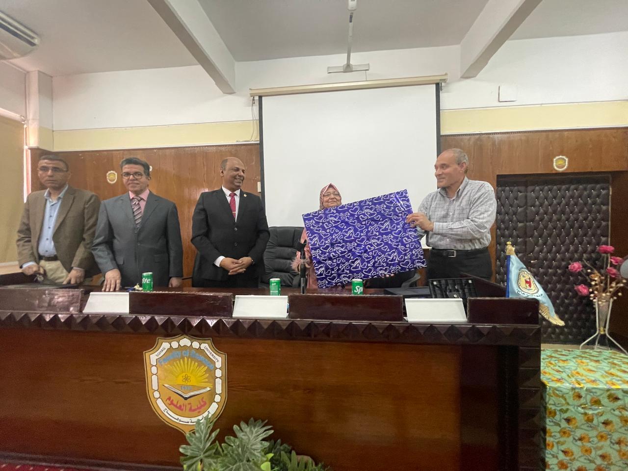 شهدت أ.د/ حازم محمود المشنب – عميد كلية العلوم احتفالية تكريم للسيدة / صبرية رجب محمود – بادارة رعاية الشباب بمناسبة بلوغها سن المعاش. واوضح سيادة العميد بان تنظيم الاحتفالية ياتى فى اطار دعم و تعزيز الروابط الاجتماعية بين منسوبى الكلية و تكريما لهم علي المجهودات المثمرة التي امتدت على مدار عشرات السنوات و اسهمت فى دعم العملية التعليمية . و قد حضر الاحتفالية لفيف من السادة أعضاء هيئة التدريس و الهيئة المعاونة و العاملين بالكلية.