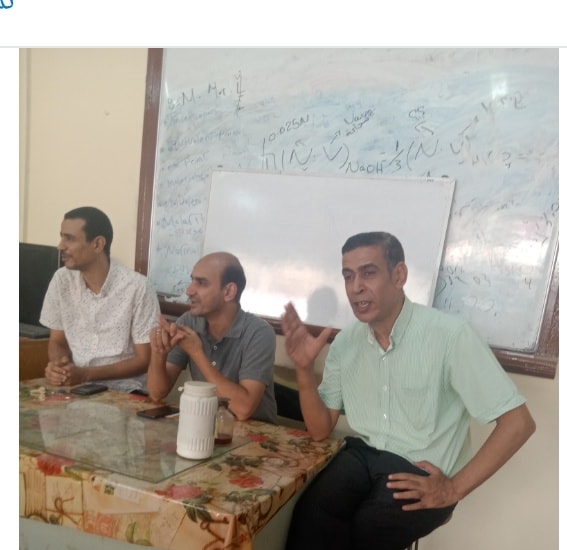 اختتمت الأربعاء ورشة العمل الاستدامة فى المواد الكيميائية و حاضر فيه د محمود عبد العليم ود بهجت رمضان ود على محمد والذى اختص الساده المحضرين بالقسم بتطبيق الجزء العملى عن كيفية تحضير الكواشف الكيميائيه اللازمه للطلاب بطريقه علميه صحيحه وكذلك تحضير بعض الكيماويات اللازمه للدروس العمليه بدل من شرائها وتحضير الكميات المناسبه اللازمه لعدد الطلاب وغيرها