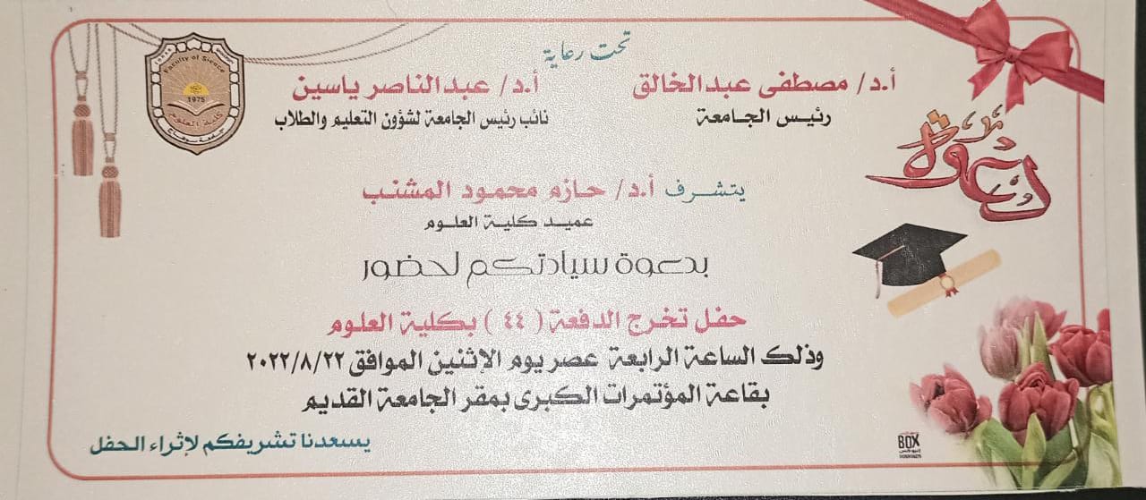 دعوة لحفل تخرج الدفعة 44 بكلية العلوم