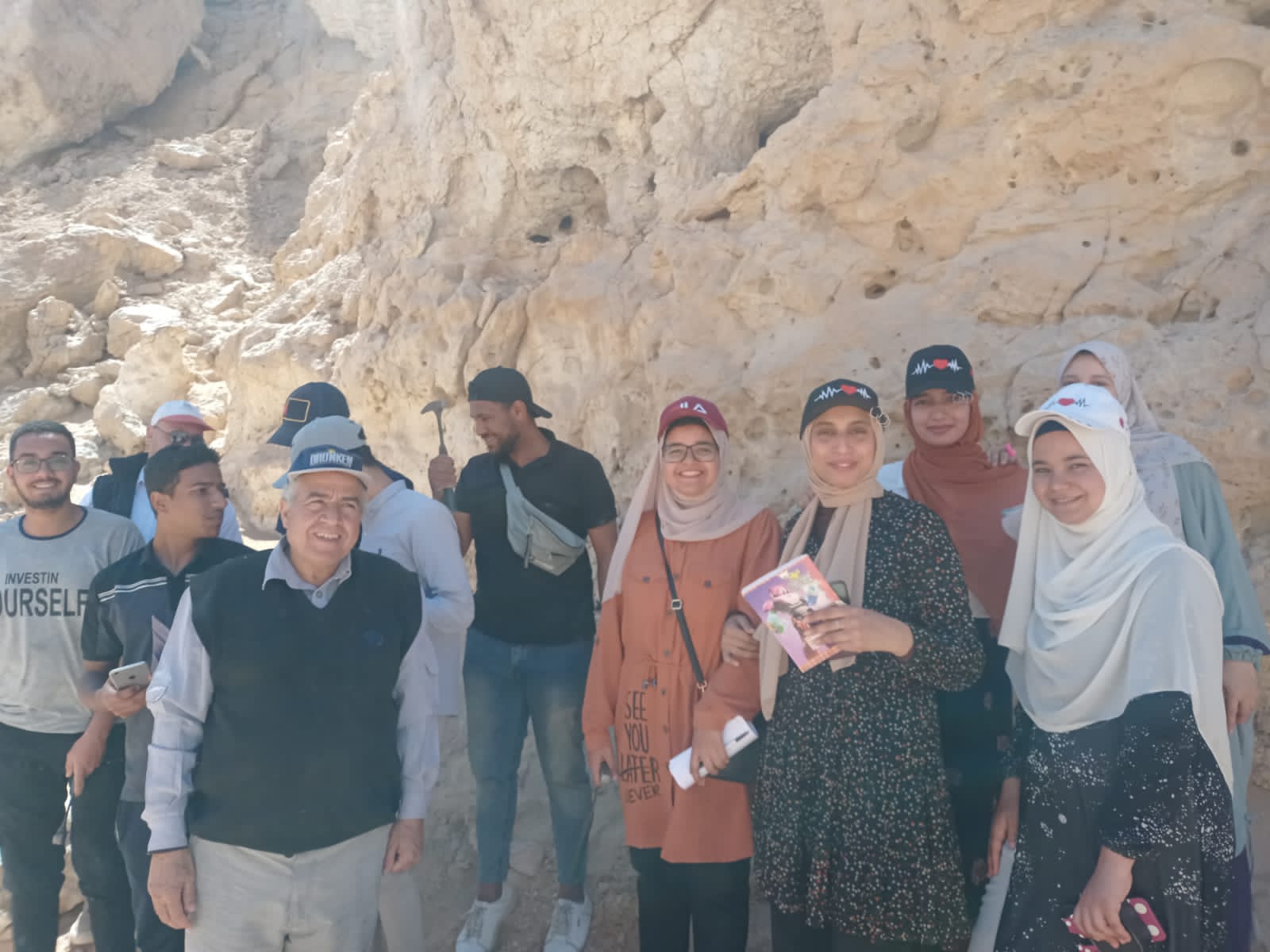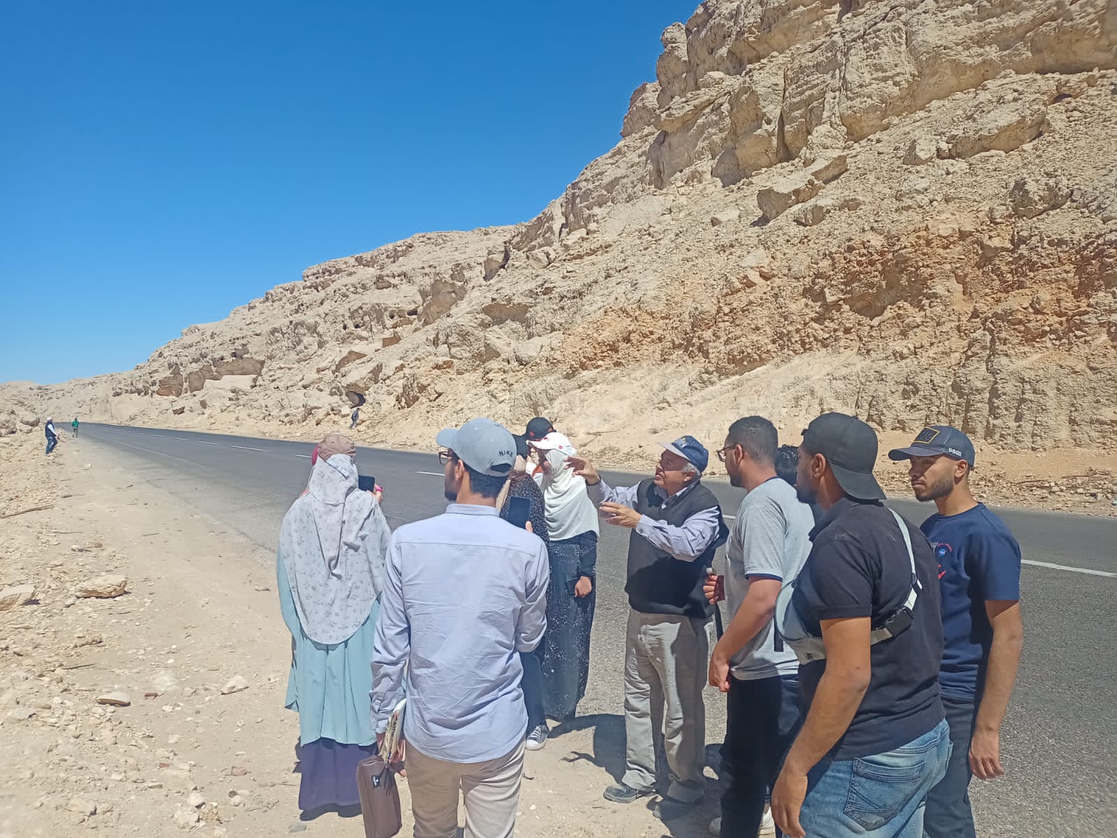 وقد قام الطلاب بمعرفة المعدات اللازمة لإتمام العملي الحقلي من حيث توافر نوته الحقل، الشاكوش الجيولوجي، البوصله لقياس اتجاه الطبقات والميل، جهاز تحديد المواقع GPS، ادوات القياس ، استخدام حمض الهيدروكلوريك للتعرف علي الصخور الجيرية، وكذلك مفهوم العمل الحقلي و أساسيات الدراسة الحقلية من حيث دراسه جيومورفولوجية المنطقة والوديان القاطعة للصخور وتحديد القطاع النموذجي الممثل للمنطقة ثم الوصف الصخري للقطاع وأخذ الصور الفوتوغرافيه الممثلة و قياس سمك الطبقات و رسم القطاع الجيولوجي ، والتعرف على الصخور الرسوبية المتواجدة بمنطقة الدراسه مثل الحجر الرملي الذي يتميز بالتطبيق المتقاطعة cross-bedding، الحجر الطيني، والحجر الجيري التي تكونت بواسطة الأنهار أو البحار ، ثم دراسة الطبقات المختلفه ومكوناتها بدأ من أسفل التتابع وتجميع العينات الممثلة غير المجواه و وصف التراكيب الجيولوجيه المختلفه وفترات انقطاع الترسيب بين الطبقات. ثم دراسه انواع الحجر الجيري البحري المتواجد بالمنطقة الذي ينقسم إلى مكون طيبه الذي يتميز بصلابته و احتوائه علي الصوان ويعلوه مكون درنكه الذي يتميز بتواجد الكهوف والتشققات والفواصل، وكذلك تواجد أكاسيد الحديد (laterite) في الفراغات بين الصخور الجيريه نتيجه التعريه