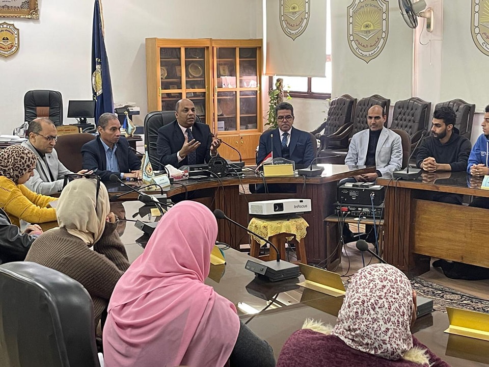 تحت رعاية معالى الوزير الاستاذ الدكتور حسان النعمانى وفى ضوء سلسلة اللقاءات والتوعيه التى تحث على المشاركه فى الانتخابات الرئاسية المقبله عقد الاستاذ الدكتور حازم المشنب عميد الكلية و الساده الوكلاء اجتماعا مع طلاب الكليه لحثهم على المشاركه فى الانتخابات الرئاسيه وممارسة حقهم الدستورى وأوضح لهم أهمية المشاركه بايجابيه باعتبارها ركيزة أساسية لبناء الوطن، وإسهاما مهما فى العملية الديمقراطية، واكد لهم مواصلة الكلية فى مساعدة الطلاب لمعرفة لجانهم الانتخابية تيسيراً عليهم وتشجيعاً لهم على ممارسة حقهم الدستوري في الإدلاء بأصواتهم وطالبهم بأن يكونوا إيجابيين، والإدلاء بأصواتهم الانتخابية بكل وضوح وشفافية، وكذلك طالبهم برفع الوعي المجتمعي لذويهم وقيامهم بدورهم في بناء وطنهم بشكل بارز من خلال المشاركة في الاستحقاقات الدستورية أيام 10 و11 و12 ديسمبر الجارى.وأشار سعادته إلى ثقته الكبيره في جميع الطلاب ومدى إيجابيتهم وولائهم وانتمائهم للوطن، متمنيًا لمصر الحبيبة دوام الأمن والاستقرار.