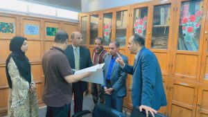 تفقد سعادة الأستاذ الدكتور حازم المشنب، عميد الكلية، معشبة قسم النبات والميكروبيولوجي، يرافقه الأستاذ الدكتور ضياء الدين رضوان، رئيس القسم، والأستاذ الدكتور زكريا عطيه محمد، وكيل الكلية السابق، والأستاذ الدكتور قدري نبيه عبد الخالق، أستاذ التصنيف والفلورا النباتية، حيث اطّلعوا على التطورات والتجديدات التي شهدتها المعشبة مؤخرًا بدعم من الكلية، والتي شملت تطوير البنية التحتية وإعادة هيكلتها وترتيبها، فضلًا عن وضع نظام دقيق لتصنيف النباتات. وأشاد العميد بالجهود المبذولة لرفع كفاءة المعشبة، مؤكدًا دورها العلمي المتميز.