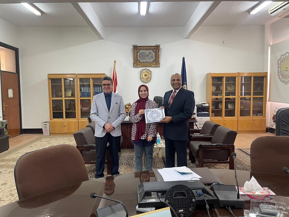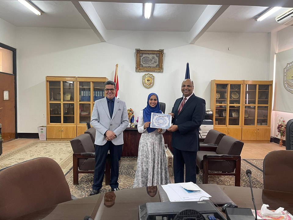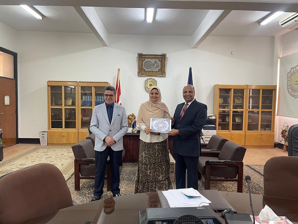 كرم الاستاذ الدكتور حازم المشنب عميد كلية العلوم والاستاذ الدكتور حسين عبد الحافظ وكيل الكلية للدراسات العليا والبحوث السادة شباب اعضاء هيئة التدريس و معاوني أعضاء هيئة التدريس بالكلية لحضورهم الدورة التدريبية لبرنامج اللاتكس LATEX و هو برنامج مميز لكتابة وتنسيق الرسائل العلمية ويعد واحدا من أفضل برامج تنسيق الرسائل العلمية وأكثرها انتشارا في العالم. يذكر أن الكلية عقدت عدة دورات تدريبية لتنمية مهارات شباب اعضاء هيئة التدريس ومعاونيهم عن التحليل الاحصائي وكيفية كتابة الابحاث العلمية وغيرها من أجل تطوير وثقل مهاراتهم وإعدادهم بكفاءة عالية