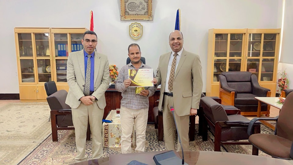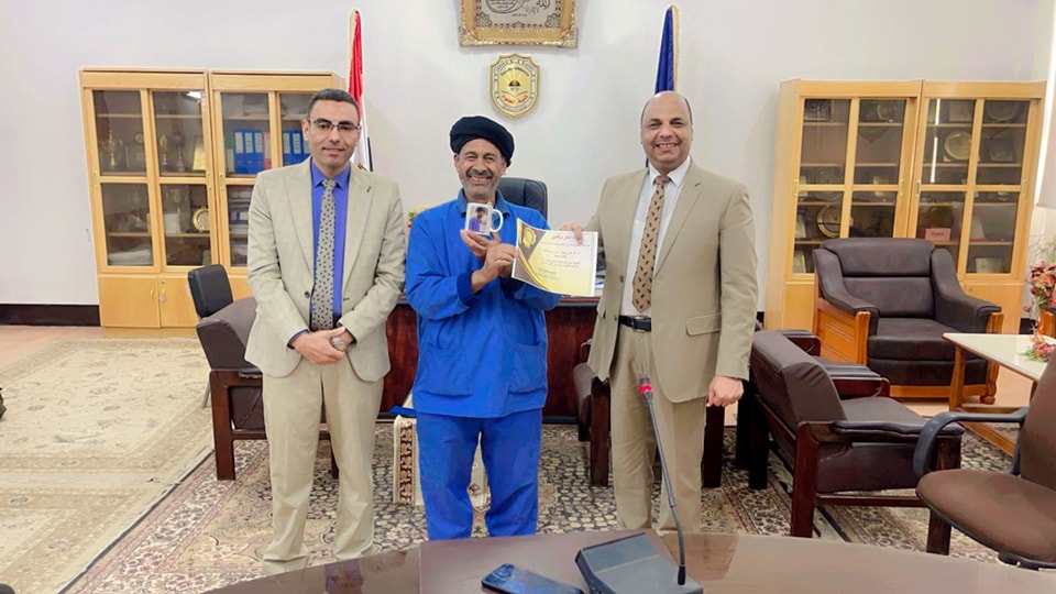 فى لفته طيبه و انطلاقا من حرص إدارة كلية العلوم على تقدير جهود العاملين وأدائهم المتميز وتحفيزهم على بذل المزيد من الجهد والعطاء وفى جو من الموده والسعاده كرم سعادة الأستاذ الدكتور حازم المشنب عميد الكلية الموظفين المثاليين لهذا العام وبحضور الاستاذ هشام جلال امين الكلية وذلك لادائهم المتميز .وقدم لهم سعادة العميد التهنئة والمباركة لهذا التميز واصفا إياهم بالقدوة الحسنة بين زملائهم، وحثهم على مواصلة الجهود والتميز ، متمنياً لهم دوام التفوق والنجاح.أكد سعادته خلال كلمته أن الاختيار تم وفقا لأعلى معايير الشفافية والحياد موضحاً أن التكريم يأتى تقديرا لجهودهم المتميزة التي بذلوها وتشجيعاً لجميع العاملين باعتبارهم احد الاضلاع الأساسية في تقدم وتطور الكلية، و أثني على جهودهم والتزامهم تجاه الكلية، وتمنى أن يحفز هذا التكريم جميع موظفي الكلية على تقديم أفضل ما لديهم لتحقيق المزيد من النجاحات بالكلية. وقدم السادة العاملون الشكر والتقدير لسعادة عميد الكلية على هذه اللفته الطيبه مؤكدين على أن الكليه هى بيتهم الثانى واستمرار حرصهم على التفانى وبذل الجهد فى سبيل تقدم الكليه تحت القياده الحكيمه المتحضرة المحبوبة لسعادة الاستاذ الدكتور حازم المشنب
