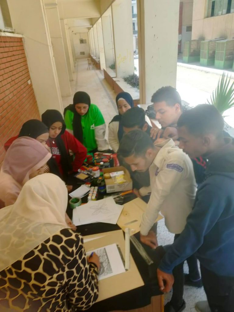 وفي هذا الصدد، قامت إدارة رعاية شباب كلية العلوم بتنفيذ ورشة عمل تدريبية متميزة بمركز تدريب عشيرة الجوالة بالكلية، حيث تم تدريب الطلاب عمليًا على فنون الرسم والنحت والحرق على الزجاج والخشب والقماش. وقد أشرفت على هذه الورشة الدكتورة/ أمل محمد من قسم الفنون بكلية التربية النوعية، والتي قدمت للطلاب شرحًا مفصلاً وتطبيقات عملية لتنمية مهاراتهم الفنية والإبداعية.