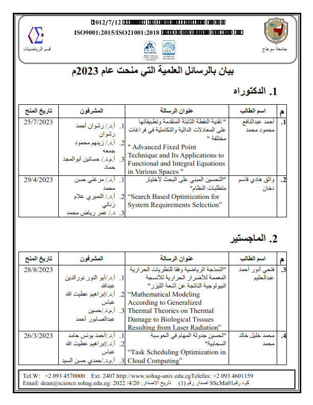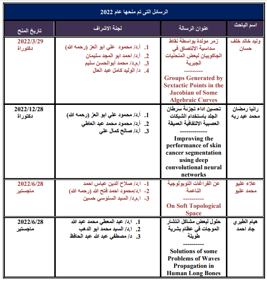- الترتيب الرابع طبقا للأبحاث المنشورة في سكوبس بالنسبة لجامعة سوهاج عام 2022 م