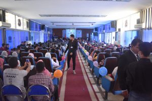 والجدير بالذكر أن حفل استقبال الطلاب تضمن عدد من الفقرات الفنية، مع تقديم عرض توضيحى لجميع أقسام الكلية، ومحاضرة تعريفية عن لائحة الساعات المعتمدة والإرشاد الأكاديمى من قبل الدكتور طارق طه مدير وحدة الإرشاد الأكاديمي.