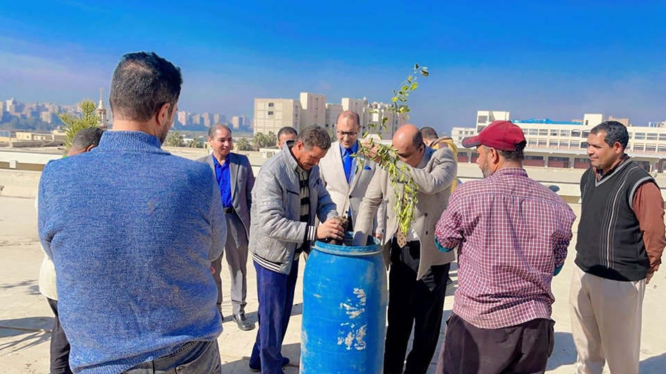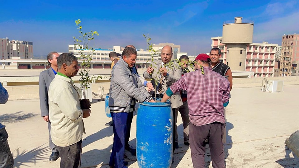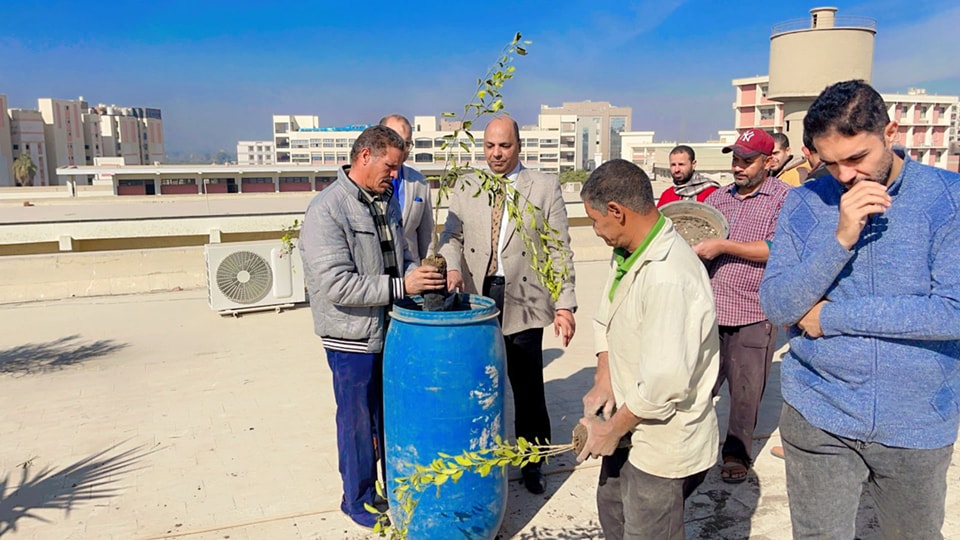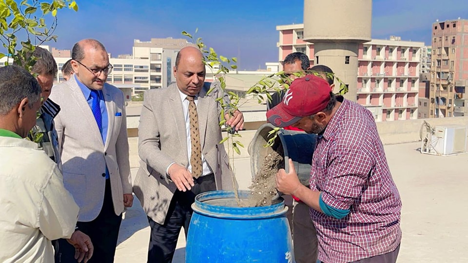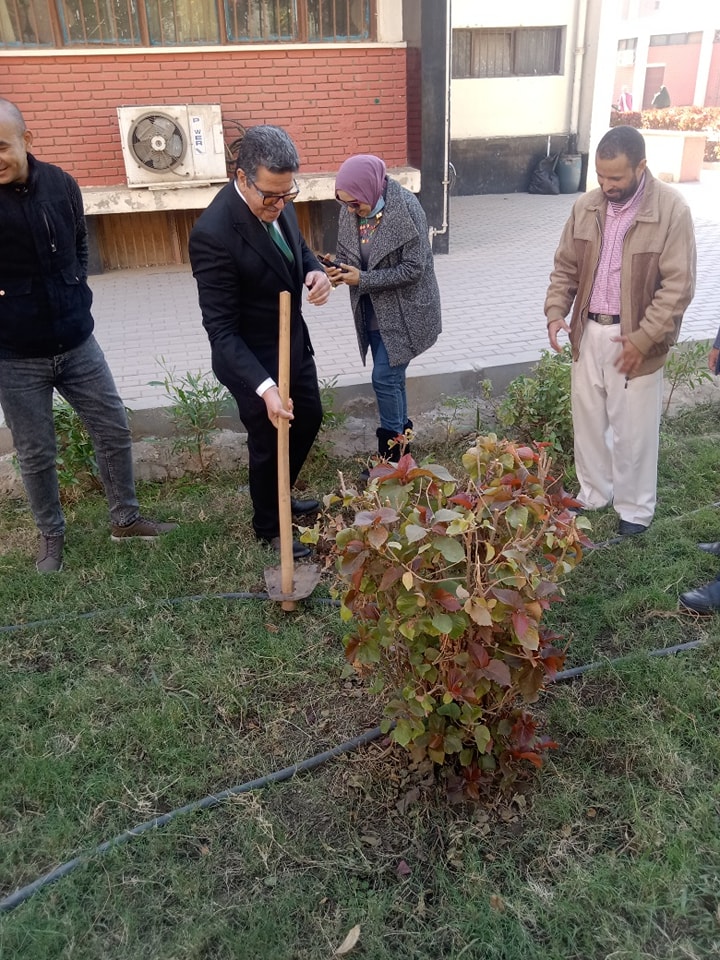 في اطار المبادرة الرئاسية بداية وتحت رعاية معالى الوزير الاستاذ الدكتور حسان النعمانى رئيس الجامعة وسعادة الاستاذ الدكتور خالد عمران نائب رئيس الجامعة لشئون خدمة المجتمع وتنمية البيئة وسعاده الاستاذ الدكتور حازم المشنب عميد كلية العلوم وإشراف الاستاذ الدكتور علاء يسرى وكيل الكلية لخدمة المجتمع وتنمية البيئة وسعادة الاستاذ الدكتور ضياء رضوان رئيس قسم النبات وإدارة الحدائق بالجامعه شاركت كلية العلوم أعضاء هيئة التدريس والعاملين والطلاب فى حملة تشجير الأشجار المثمرة بأسم فخامة الرئيس عبد الفتاح السيسي حيث تم زراعة ٢٠٠ شجرة مثمرة بمزرعة قسم النبات والحدائق المجاوره لها وكذلك سطح الكلية.