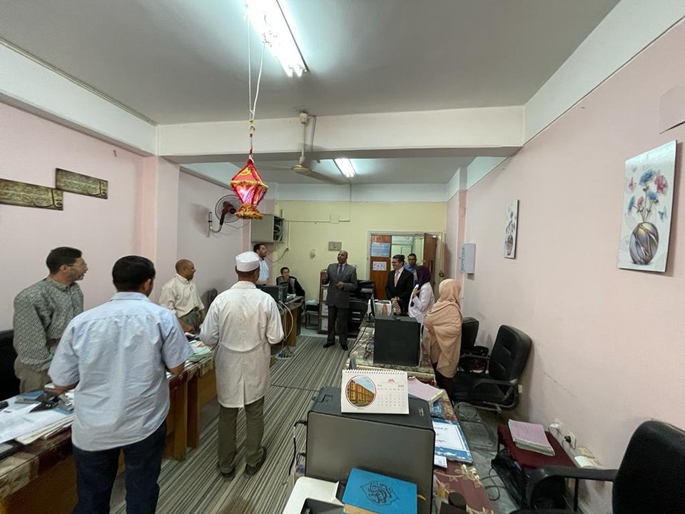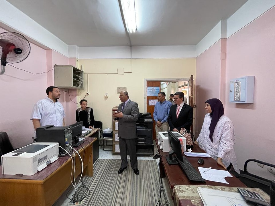 تفقد اليوم الاستاذ الدكتور حازم المشنب عميد الكلية يرافقة الاستاذ الدكتور حسين عبد الحافظ وكيل الكلية للدراسات العليا والبحوث والسيد هشام جلال امين الكلية لمتابعة سير العمل بإدارات ووحدات الكلية المختلفة ووجهه لهم الشكر على اتقانهم وتفانيهم والتزامهم بالعمل