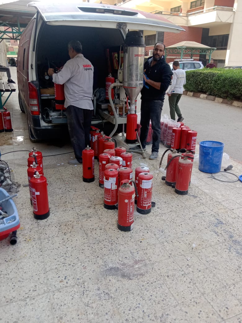 متابعة عملية صيانة الشركة المتخصصة لتعبئة طفايات الحريق