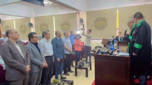 الأستاذ الدكتور نبيل نور الدين عبداللاه أستاذ الفيزياء النظرية بكلية العلوم جامعة سوهاج ورئيس الجامعة الاسبق(رئيساً).