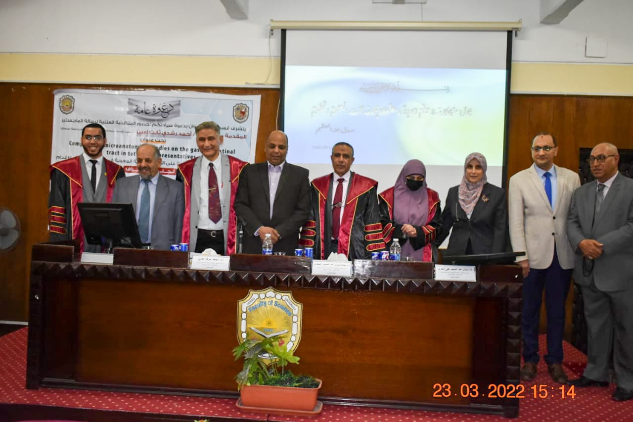 مناقشة رسالة الماجستير الخاصة بالباحث /أحمد رشدي ثابت أمين معيد بقسم علم الحيوان،