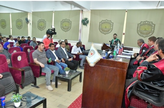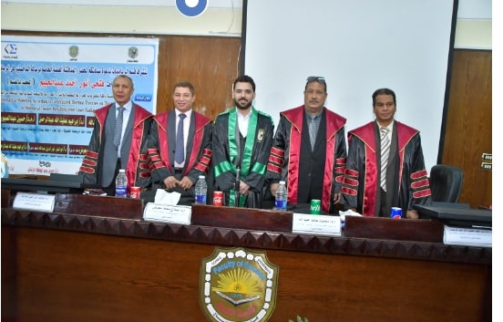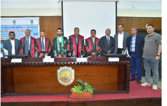 وذلك تحت رعاية سعادة عميد الكلية أ.د/ حازم محمود المشنب و في حضور سعادة وكيل الكلية لشئون الدراسات العليا أ.د / حسين عبد الحافظ الزناتي و سعادة وكيل الكلية لشئون الطلاب أ.د / زكريا عطية محمد وسعادة رئيس مجلس القسم أ.د/ صلاح الدين عباس ولفيف من أعضاء هيئة التدريس و معاونيهم و أسرة الباحث.