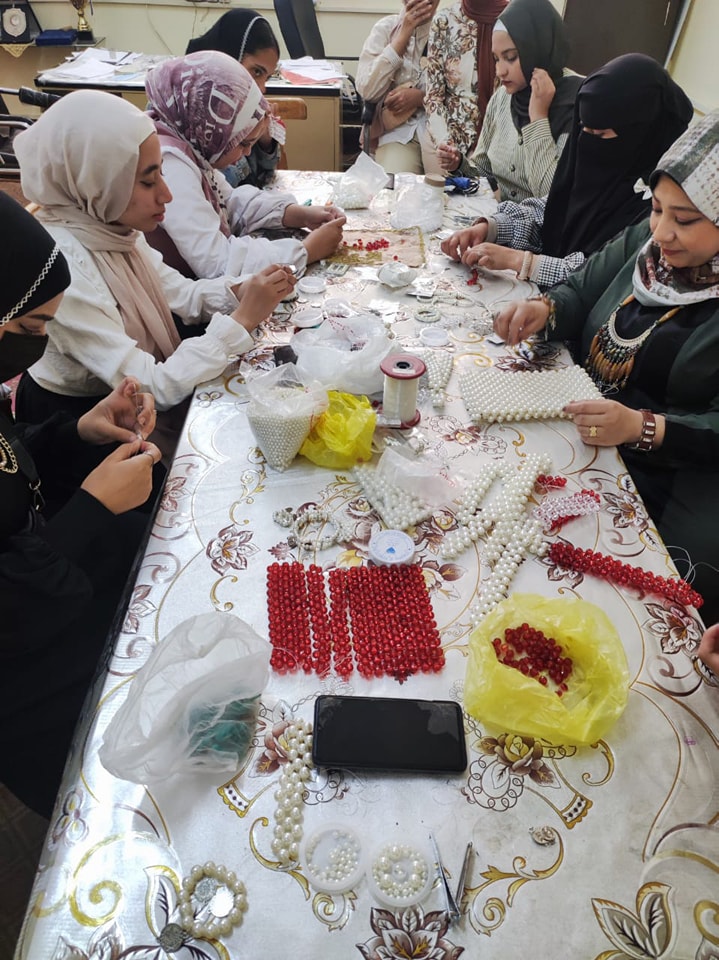 وقد افاد الدكتور محمود عبد العليم ان هذه الورشة لتنمية مهارات طلاب الكلية على الاشغال اليدوية بالاستعانة بمدربة متخصصة في هذا المجال.