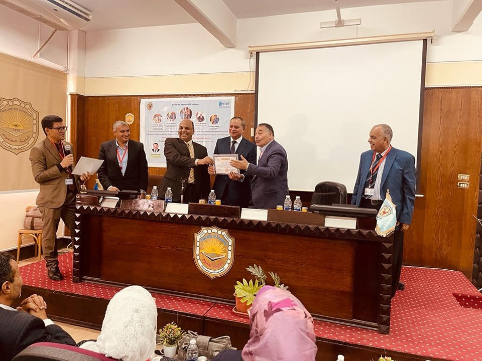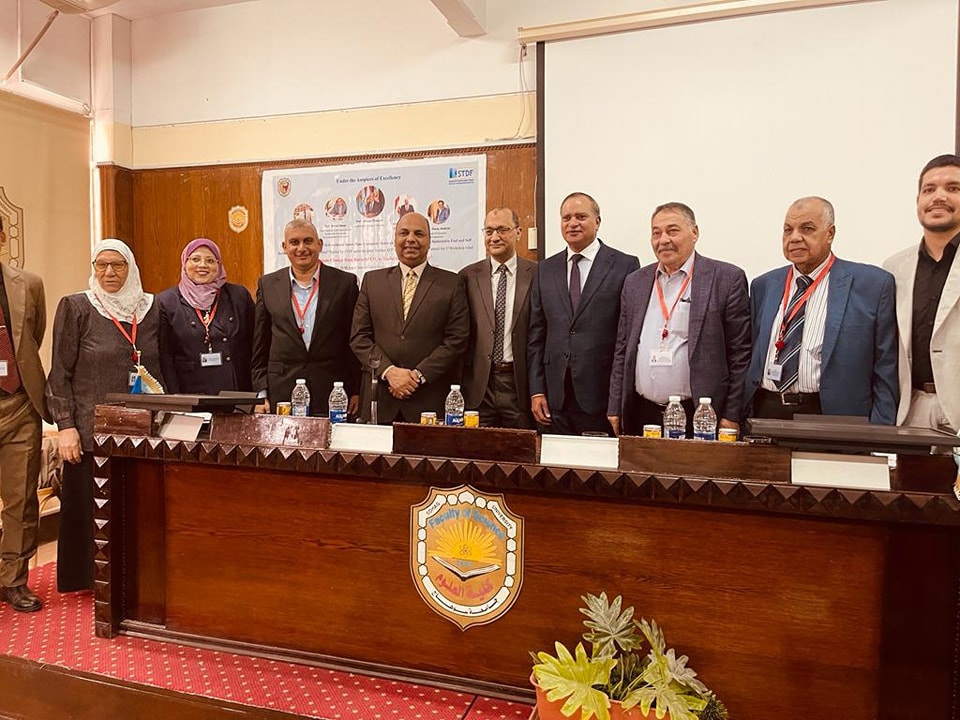 ضمن فاعليات مشروع رقم (45774) الممول من هيئة تمويل العلوم والتكنواوجيا والابتكار (STDF) من خلال قسم الكيمياء بالكلية. حيث قام عميد الكلية بإفتتاح الورشة والترحيب بالساده الضيوف وبحضور السادة الوكلاء و أعضاء هيئة التدريس ومعاونيهم والطلاب وقد حاضر كلا من الاستاذ الدكتور عبدالرحمن السيد الرئيس التنفيذي للمشروع والقي ملخص عن المشروع وأهدافه والنتائج التي تم الحصول عليها في الفترة السابقة. وحاضر الاستاذ الدكتور الرفاعي قناوي استاذ كيمياء البلمرات وتطبيقاتها بجامعة طنطا ووكيل كلية العلوم للدراسات العليا بجامعة طنطا وعضو لجنة الترقية الدائمة بالمجلس الأعلي للجامعات. و ألقي محاضرة شيقة عن تخليق البلمرات في صورة نانو فايبر وإماكانية إستخدامها في الكشف عن غاز ثاني أكسيد الكربون وتحويله. وحاضر الدكتور محمود الروبي الاستاذ المساعد بكلية العلوم والمنتدب كليا بجامعة الملك سلمان بسيناء والقي محاضرة عن تصنيع فلاتر زكية معتمدة علي تكنولوجيا النانو للتخلص من غاز ثاني أكسيد الكربون وتحويله الي وقود وإمكانية استفادة المصانع والسيارات لتقليل الانبعاثات الكربونية والمساهمة في حل أزمة التغير المناخي. كما حاضر الدكتور محمد توفيق استاذ الجيولوجيا البيئية المساعد بجامعة الزقازيق والمنتدب بجامعة الملك سلمان الدولية بسيناء. حيث ألقي محاضرة عن العصور الجيولوجية المختلفة ونشأة غاز ثاني أكسيد الكربون وتأثيراته علي المناخ المحيط والتوصيات التي تقلل من الأنبعاثات الكربونية.