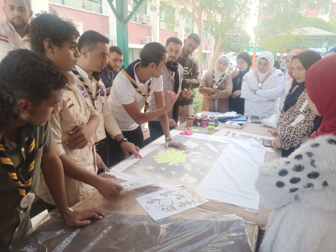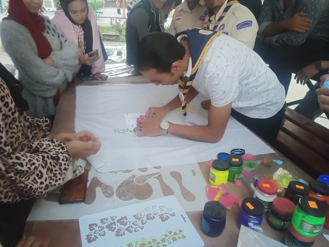 نظمت اداره رعاية الشباب بالكلية نشاط( الجوالة والخدمة العامة ) ورشه فنية لتعليم الحرف اليدوية