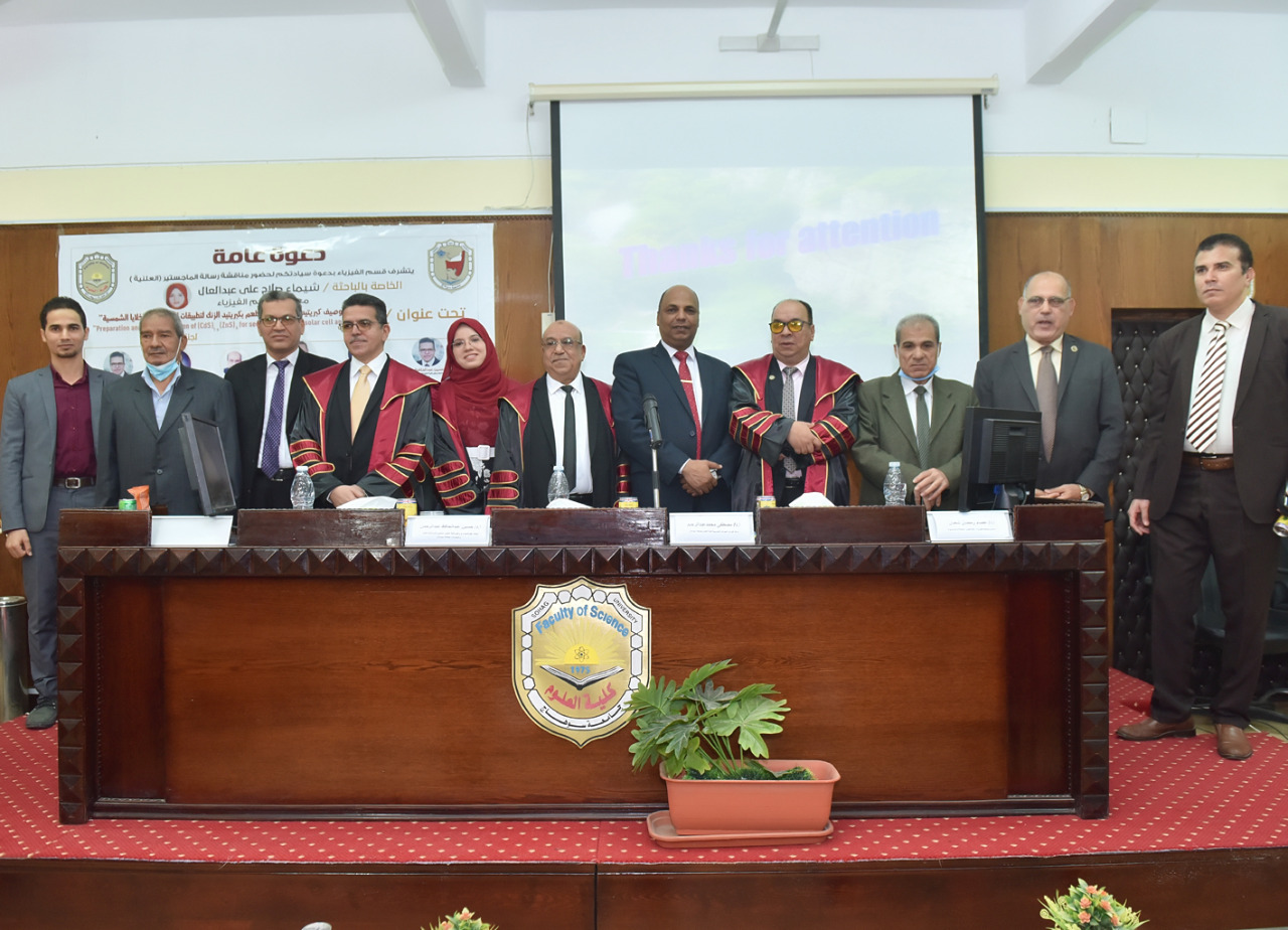 تحت عنوان :_”تحضير وتوصيف كبريتيد الكادميوم المطعم بكبريتيد الزنك وذلك يوم الاربعاء الموافق 24/11/2021 بقاعة السيمنار الدور الخامس