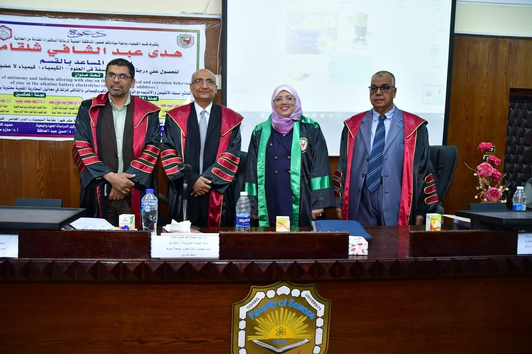 ناقشت الطالبة / هدى عبد الشافى شلقامى المدرس المساعد بقسم الكيمياء يوم الثلاثاء الموافق 8/ 11/2022 تحت عنوان