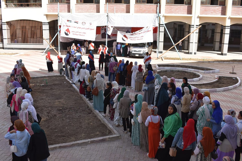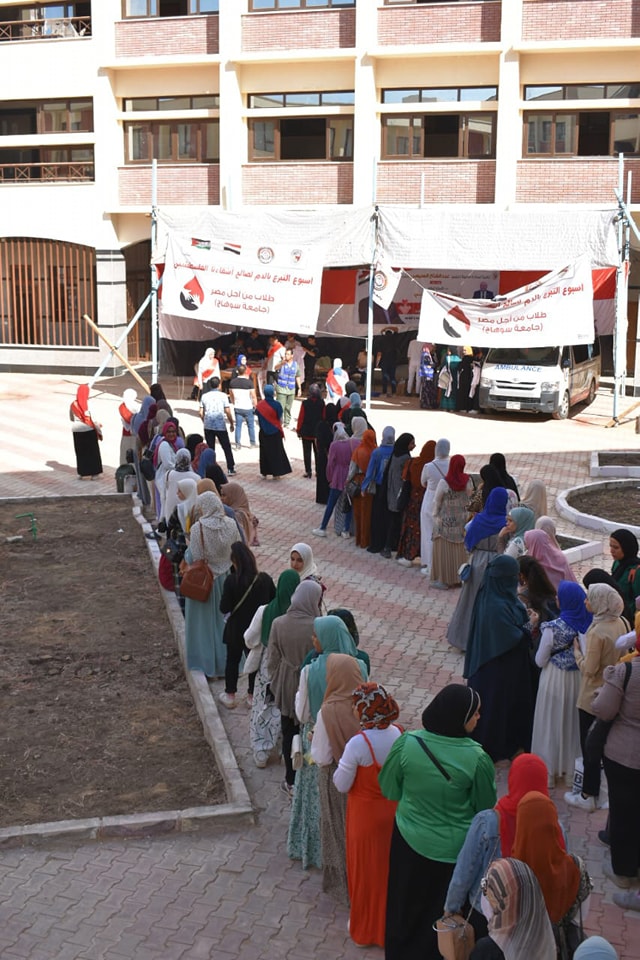 مشاركة كلية العلوم في حملة تبرع بالدم للأشقاء الفلسطينيين التي نظمتها جامعة سوهاج