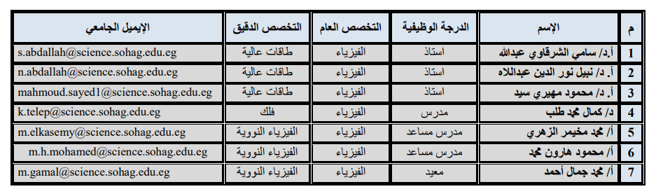 بريد الكتروني: secretary.physics@science.sohag.edu.eg