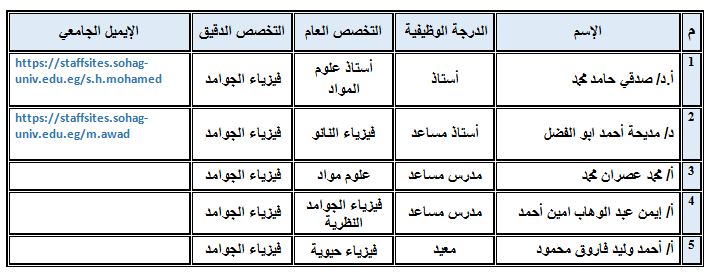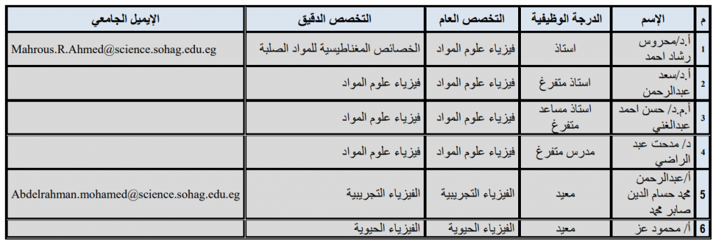 - أ.د/ مصطفى محمد وقاد محمود (أستاذ متفرغ) ……. فيزياء الجوامد التجريبية